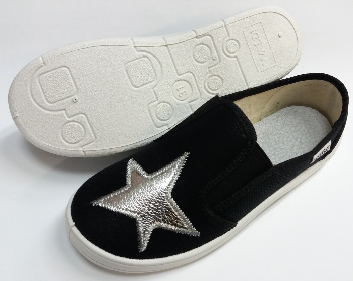 Слипоны чёрного цвета с изображением звезды. Подошва белого цвета.