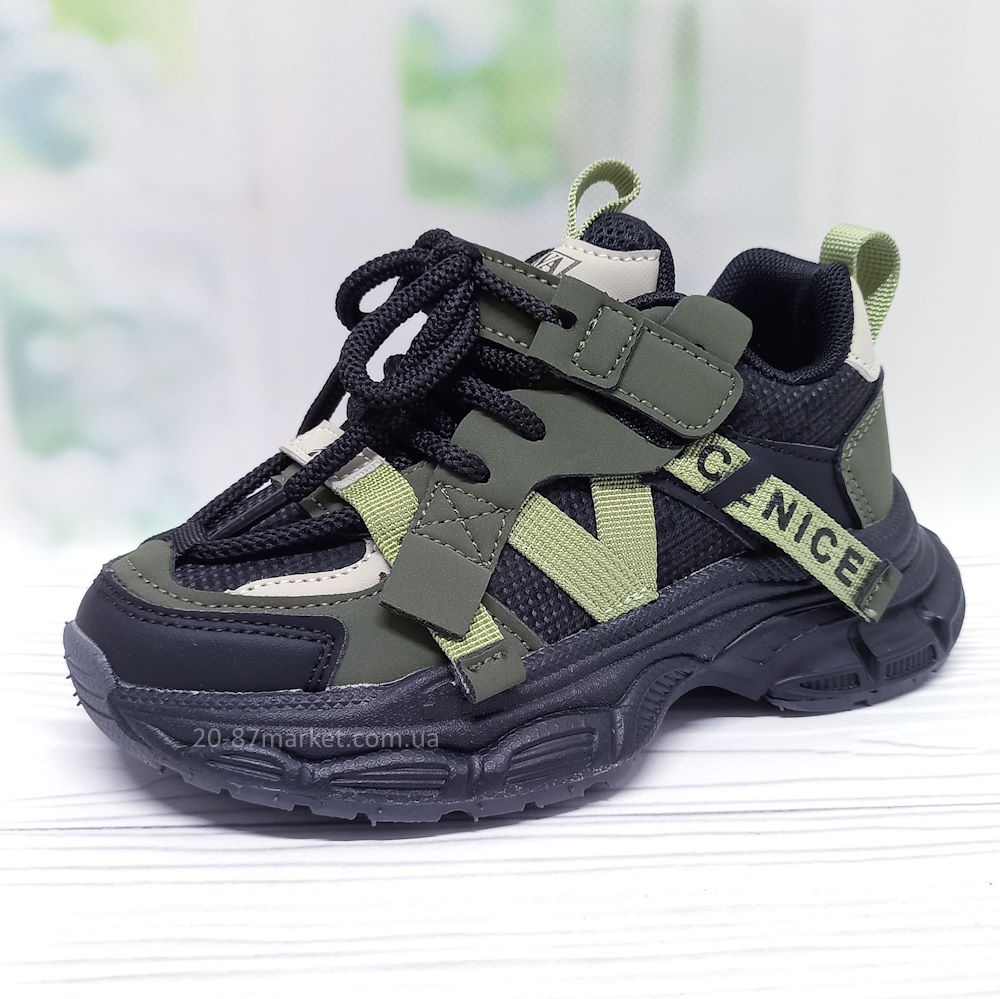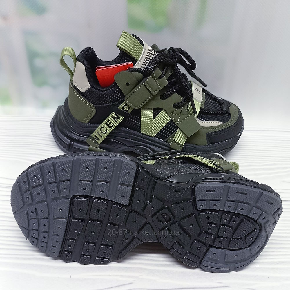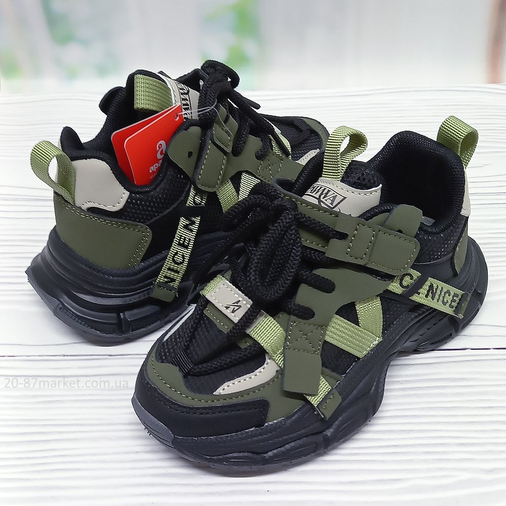Стильные детские кроссовки, хаки/чёрный, р.26-31, арт.34569, Apawwa