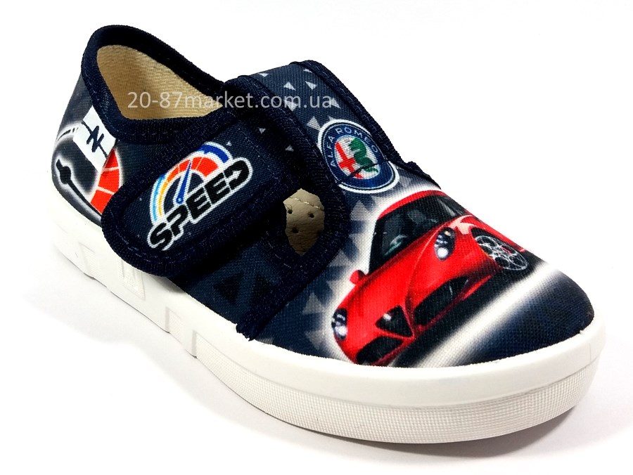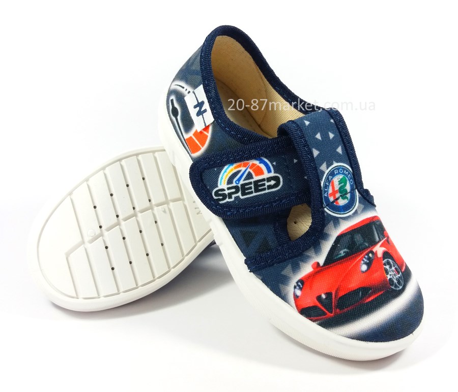 Тапочки арт.26388 р.26-32 Natur синие, принт - машина