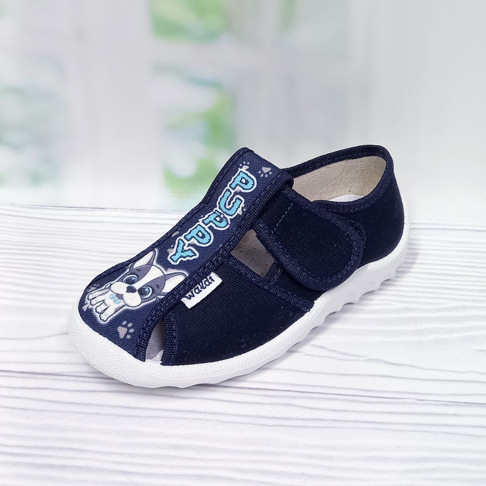 Тапочки арт.28153 р.21-27 Waldi тёмно-синие, принт "собачка, PUPPY"