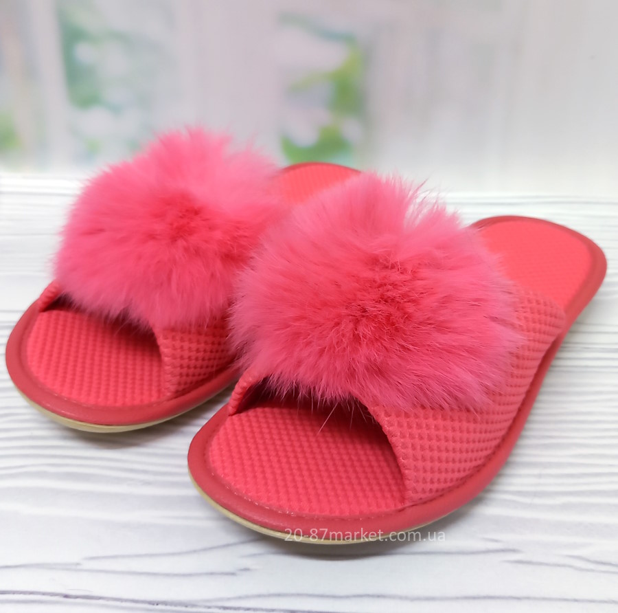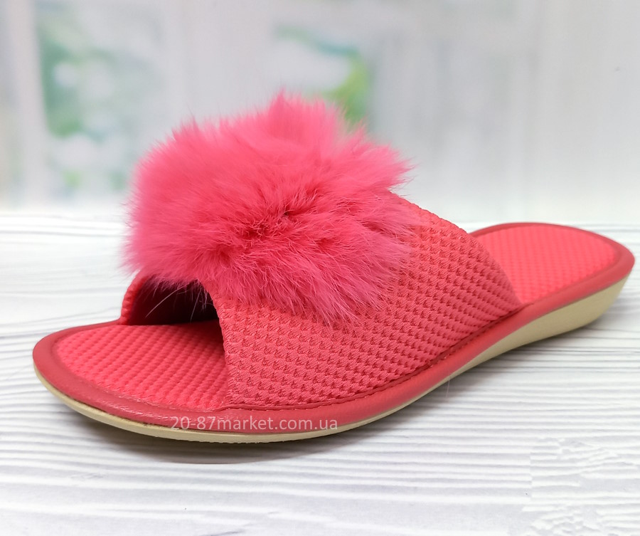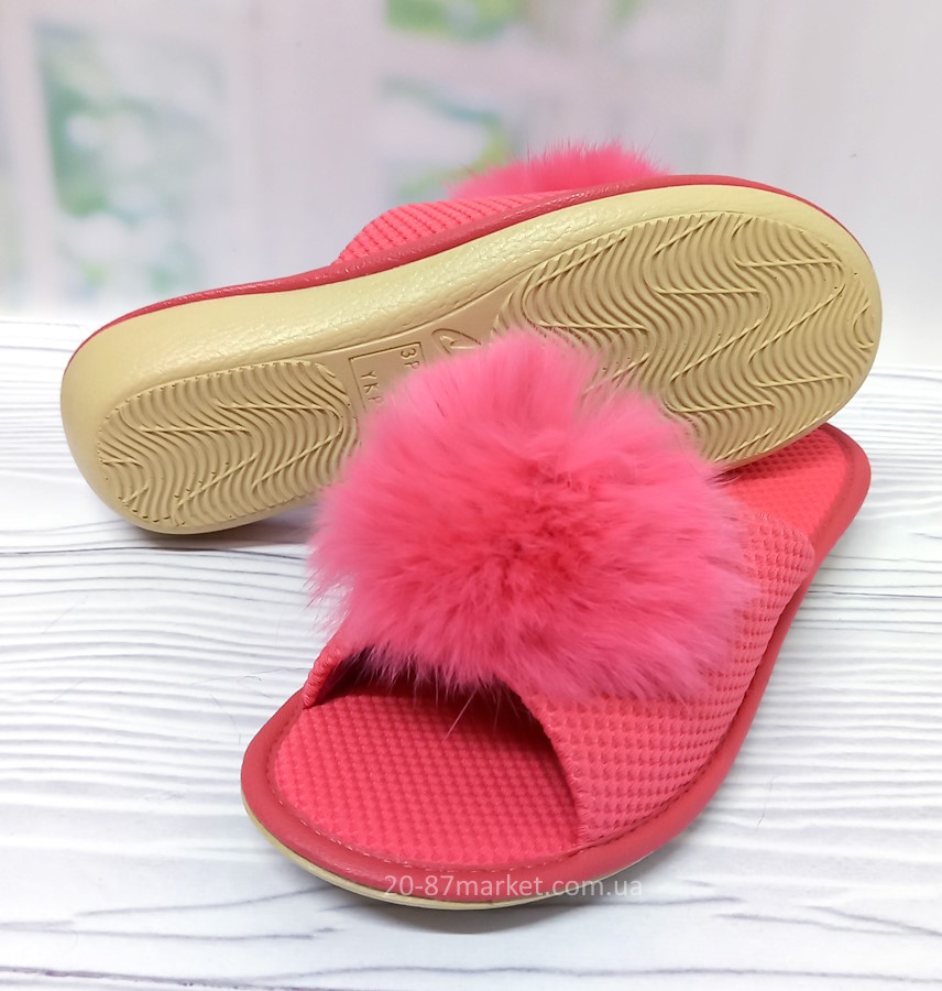 Стильные тапочки для девочки от тм Белста, кораллового цвета, украшены натуральным мехом. Подошва износостойкая из полиуретана.