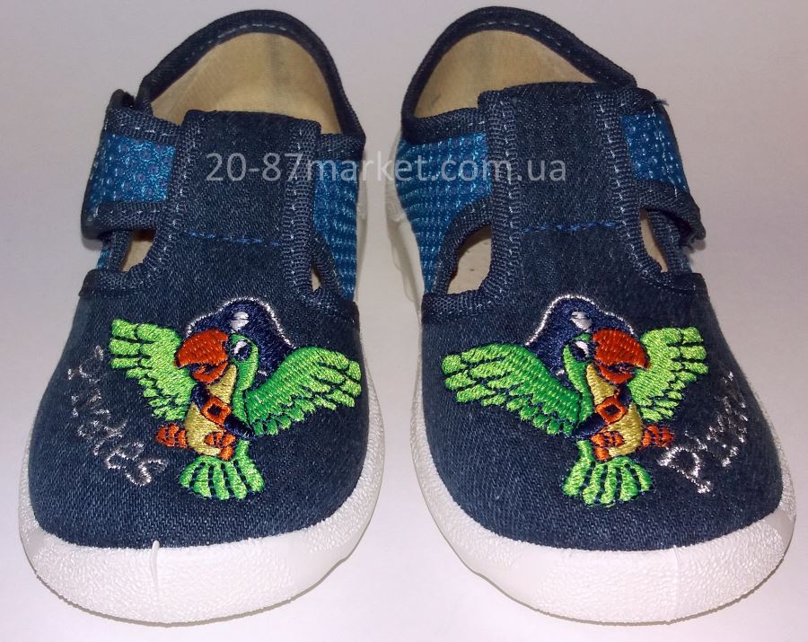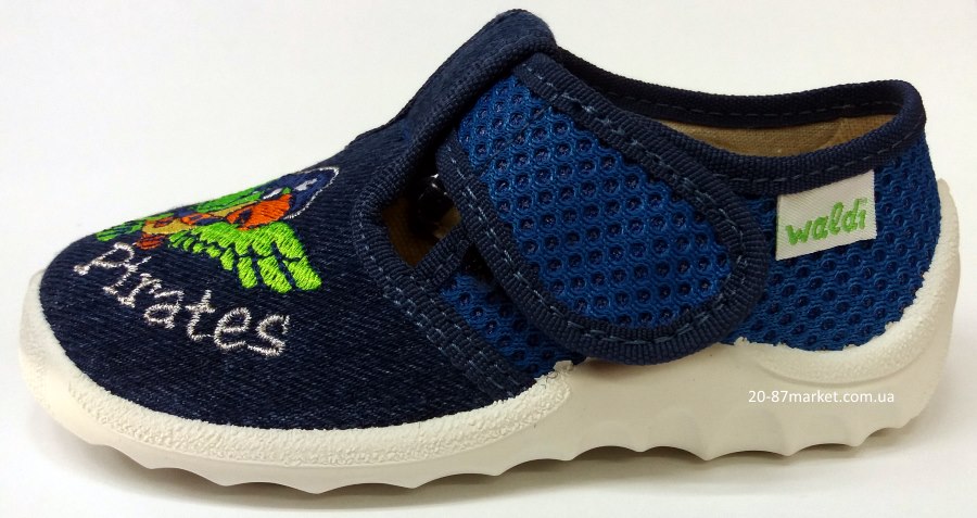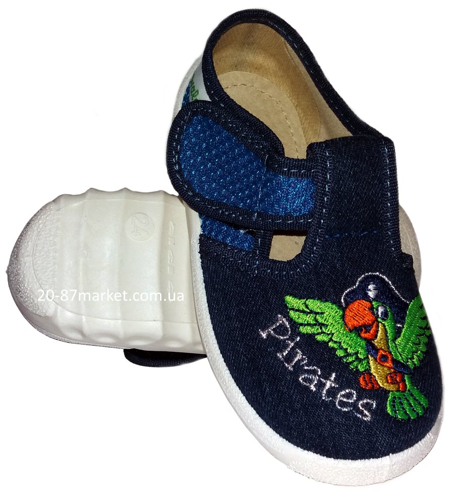 Тапочки детские, на липучках, с надписью "Pirates". Кожаная стелька, супинатор. Подошва белого цвета.