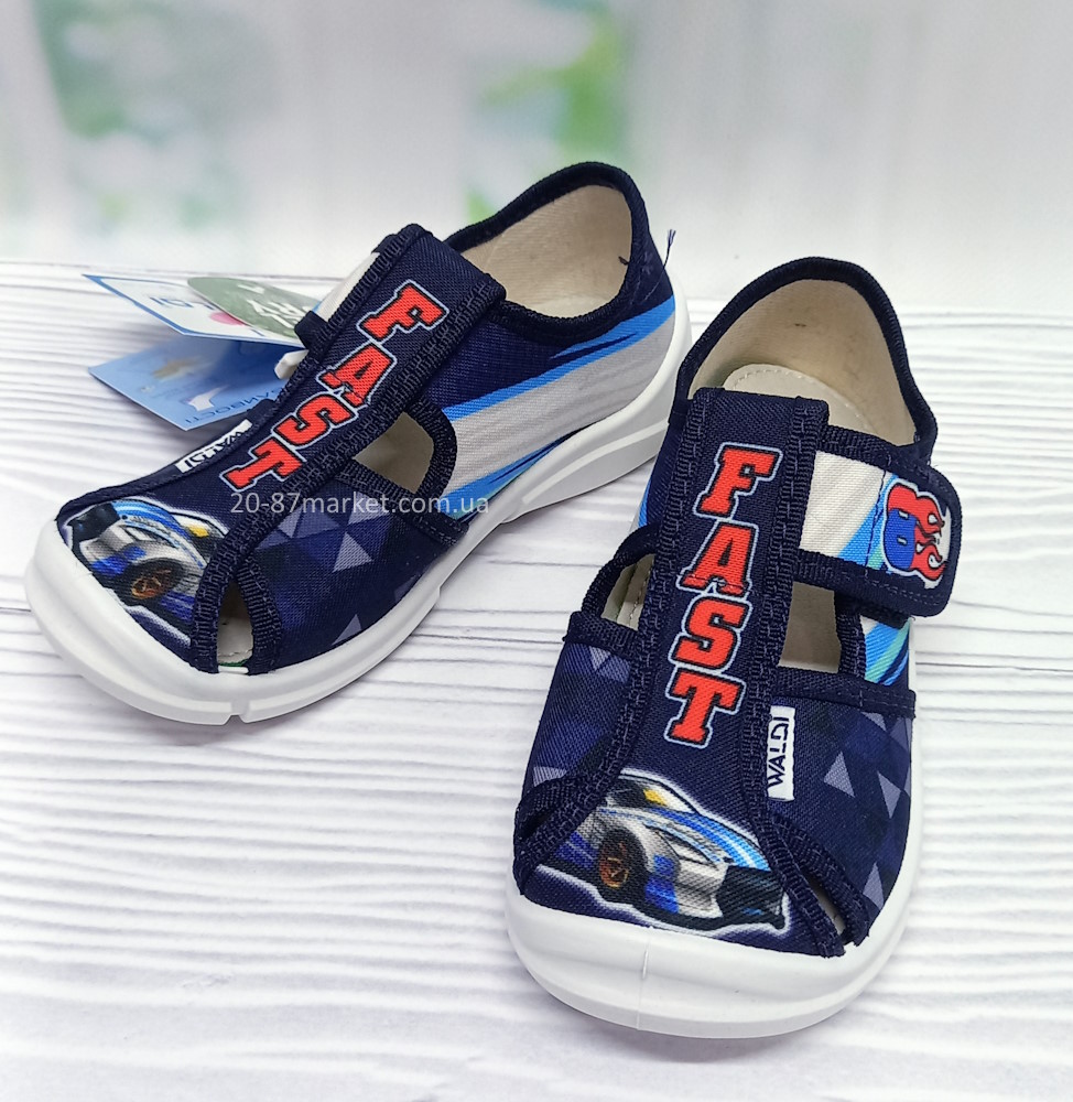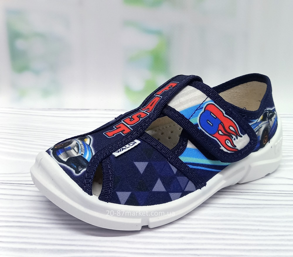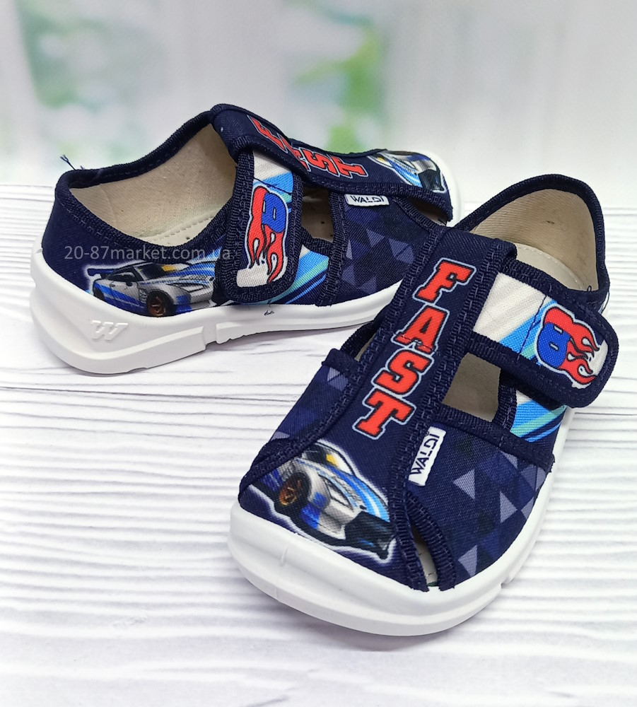 Тапочки для мальчика тм Waldi (Валди), застёжки на качественных липучках, кожаная стелька, супинатор, твёрдый задник. верх тапочек сделан с небольшими зазорами для лучшей вентиляции. Гибкая подошва белого цвета.
