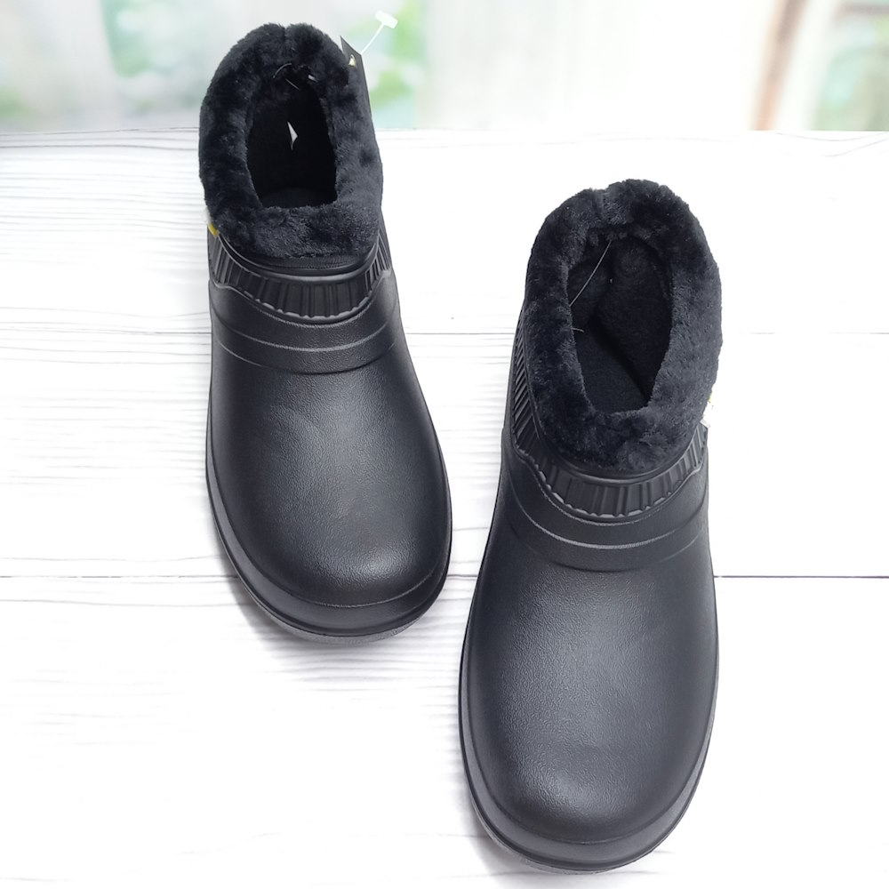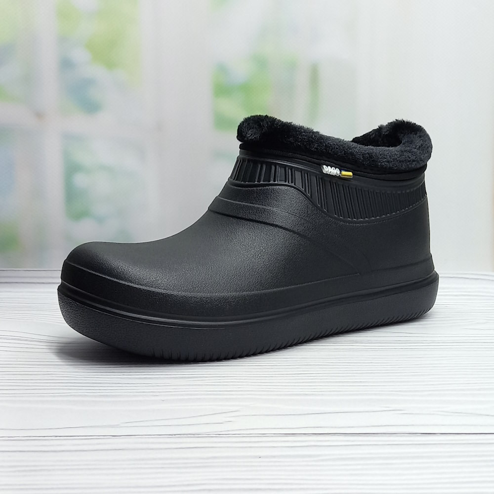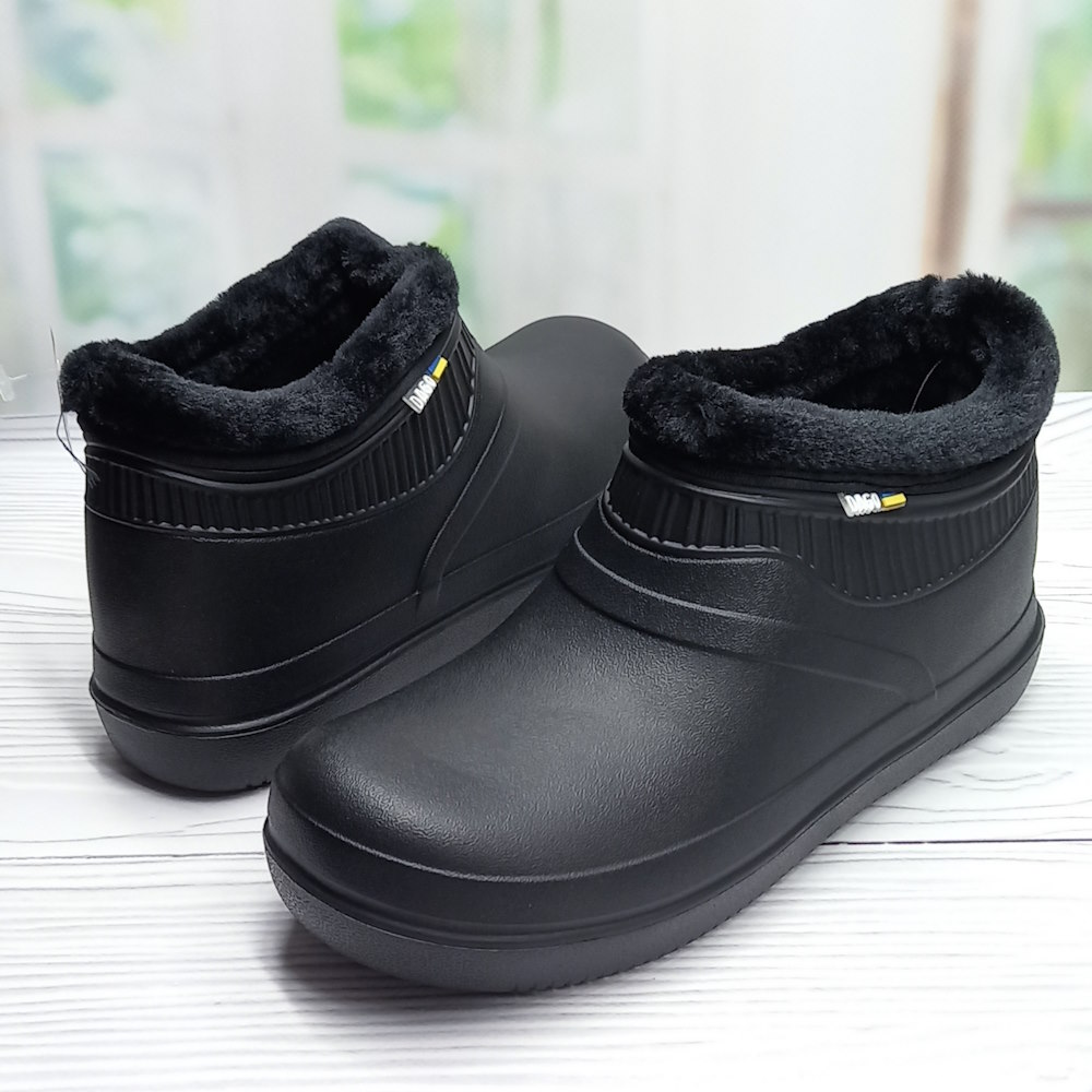Женские садовые галоши ТМ Dago Style — лёгкие и удобные. Изготовлены из ЭВА, не впитывают влагу, легко моются и быстро сохнут. Утеплены искусственным мехом, чёрного универсального цвета.