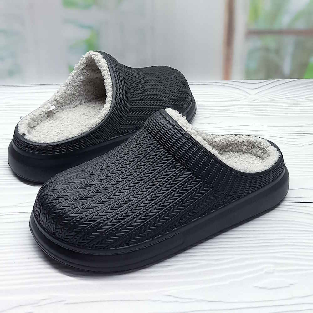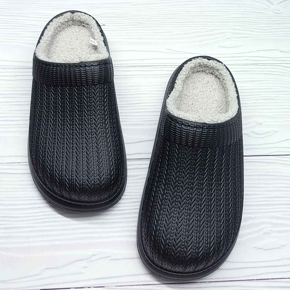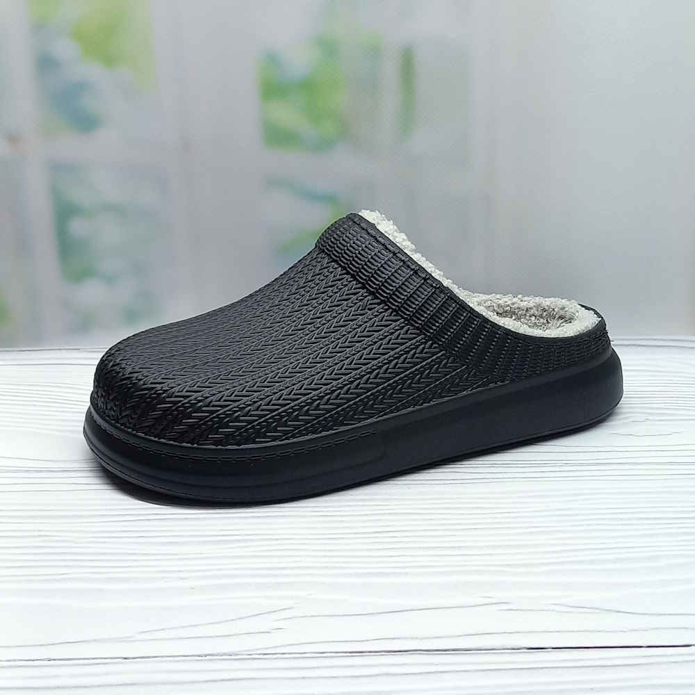 Стильные чёрные калоши выполнены из лёгкого и прочного материала ЭВА, не пропускают влагу, легко моются и быстро сохнут. Утеплённый искусственным мехом внутренний слой сохраняет тепло, обеспечивая комфорт в прохладные дни. Отличный выбор для дачи, сада или прогулок в осенне-весенний сезон.