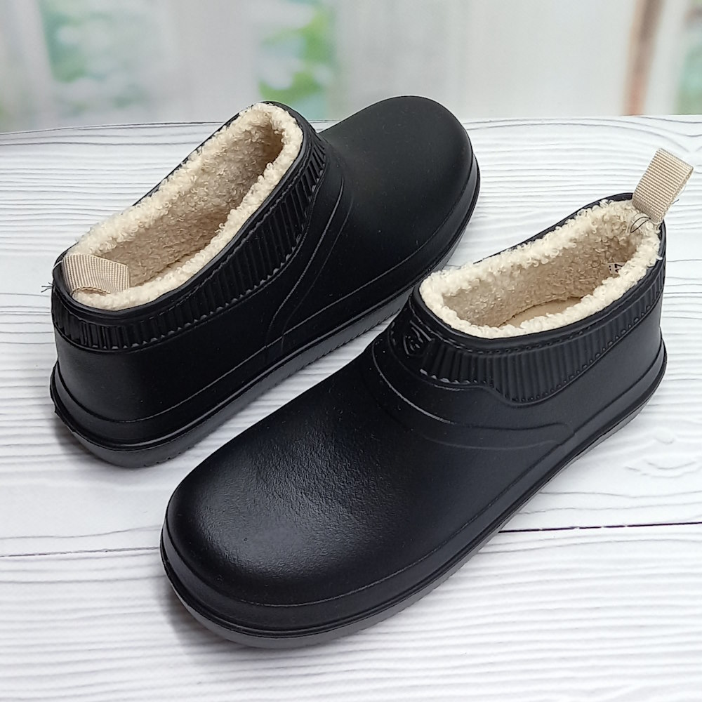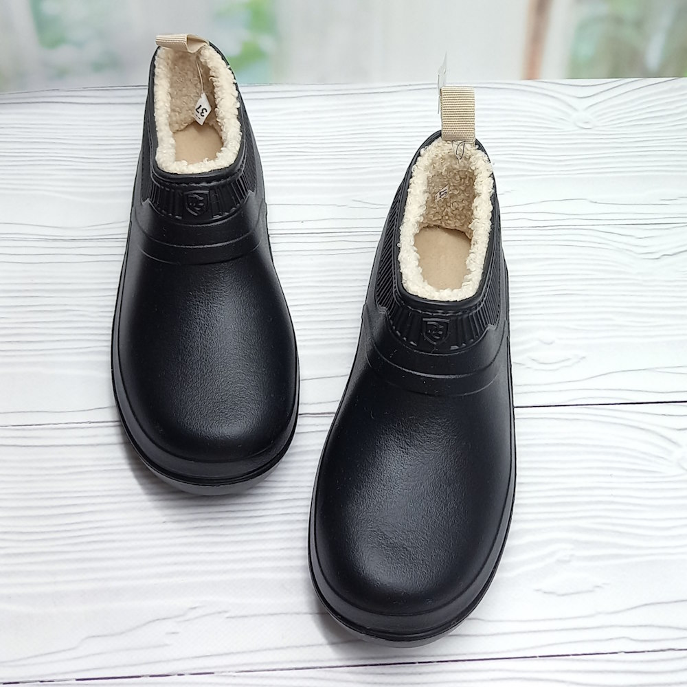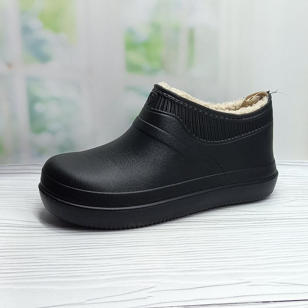 Женские садовые галоши ТМ Dago Style — лёгкие и практичные. Изготовлены из ЭВА, не впитывают влагу, легко моются и быстро сохнут. Утеплены искусственным мехом, выполнены в универсальном чёрном цвете.