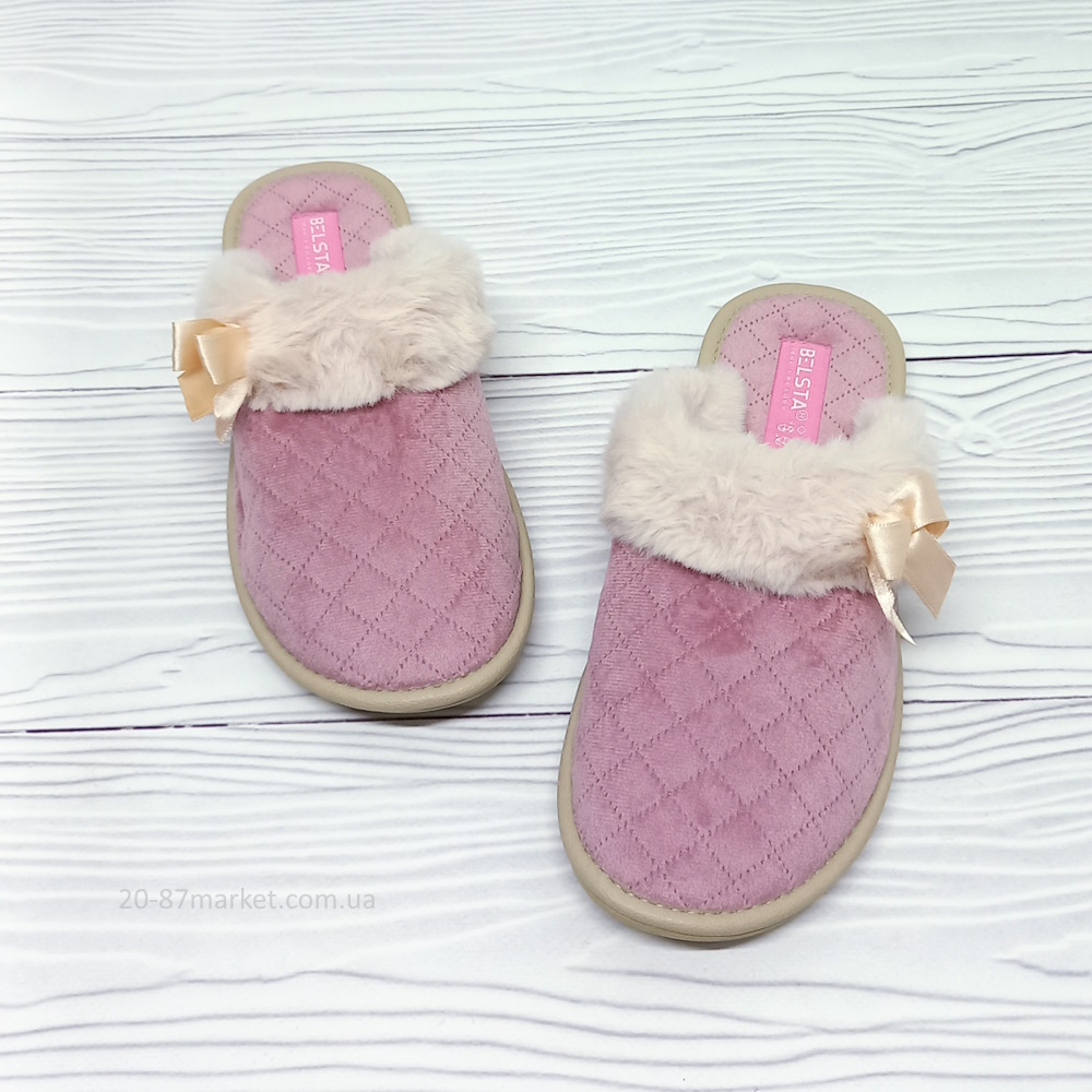 - Женские комнатные тапочки Белста арт.34974 закрытые атласный бантик пушок р.36-41 пудровые