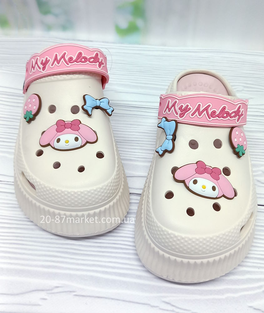 Кроксы для девочки р.36-40 арт.34225 молочного цвета