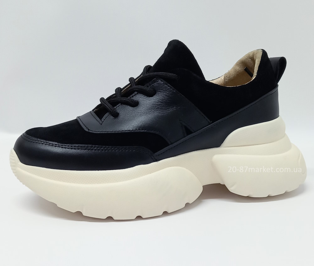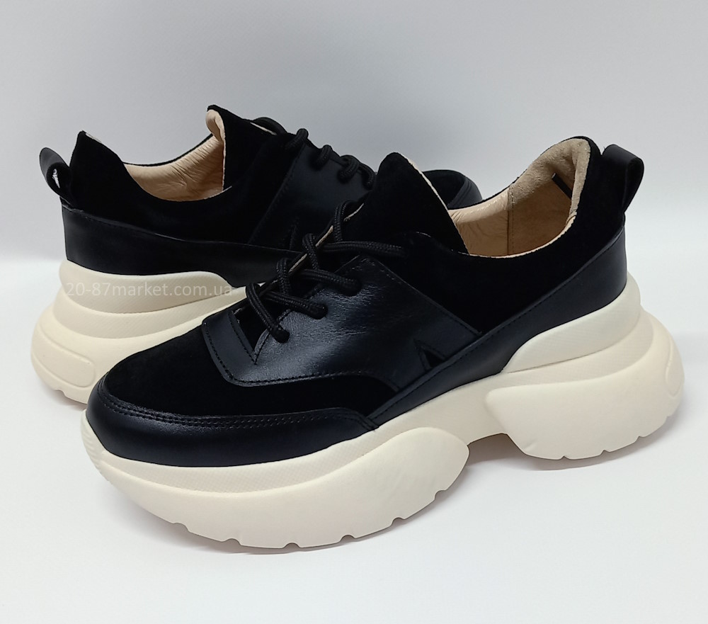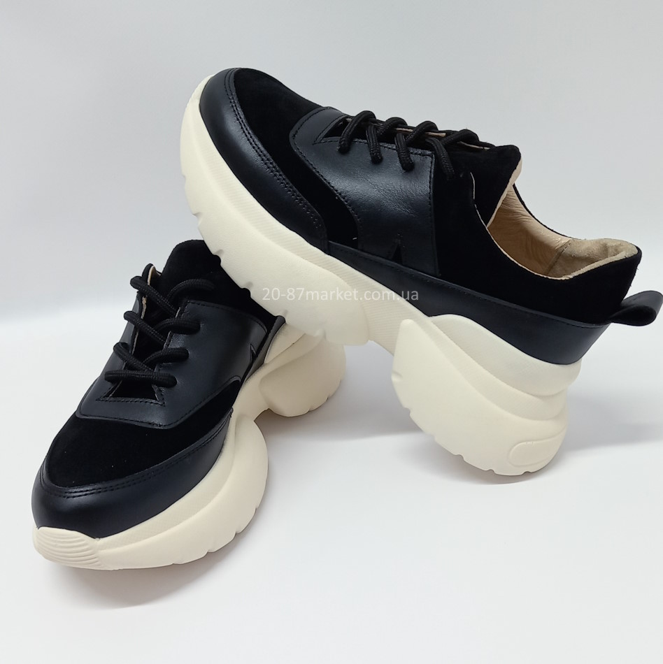 - кроссовки женские р.36-41 арт.33657 натуральная кожа, чёрные, на платформе