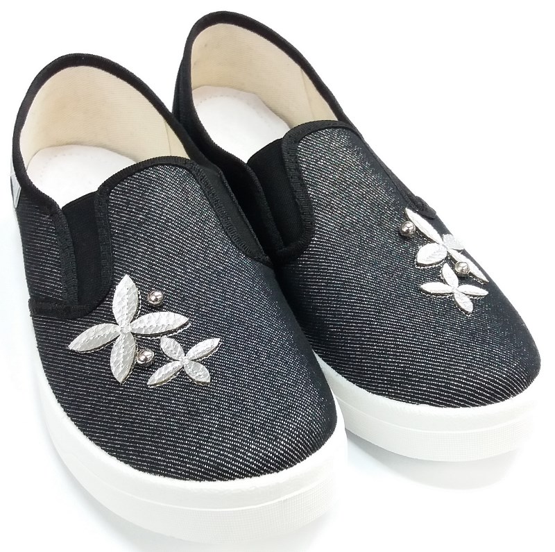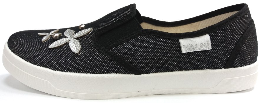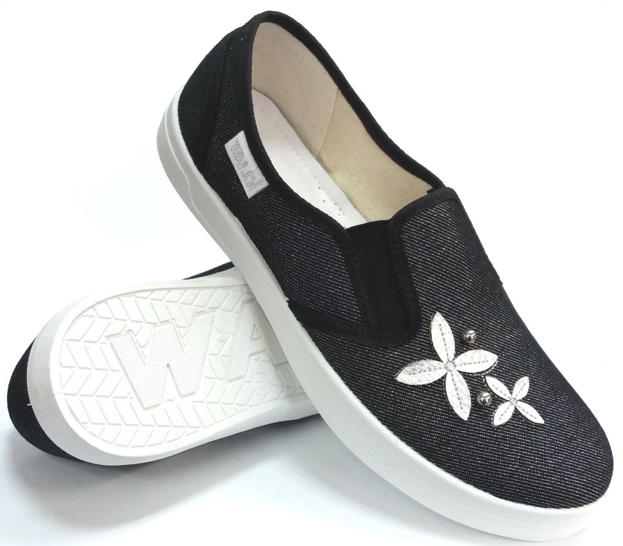 Слипоны р.36-40 Waldi цветочек, чёрные (Вика3)