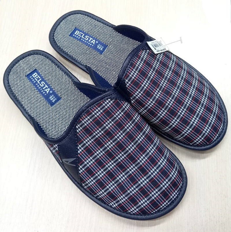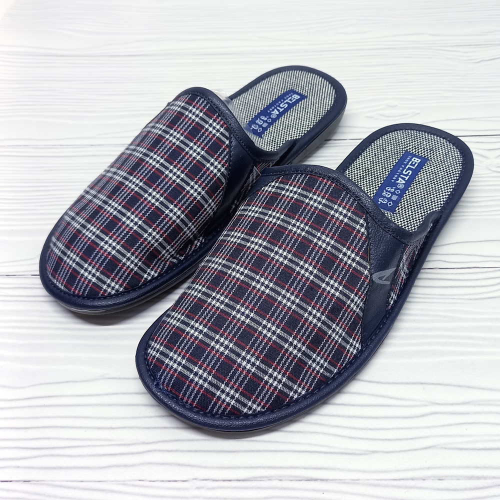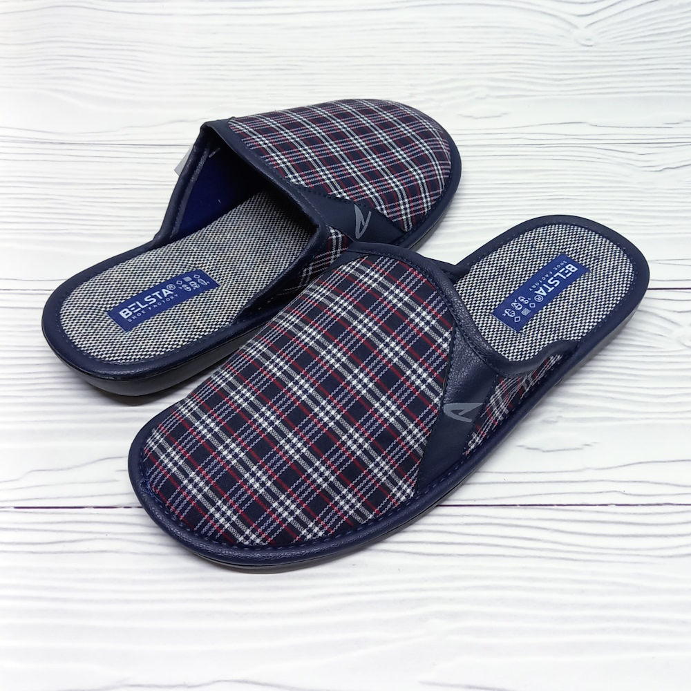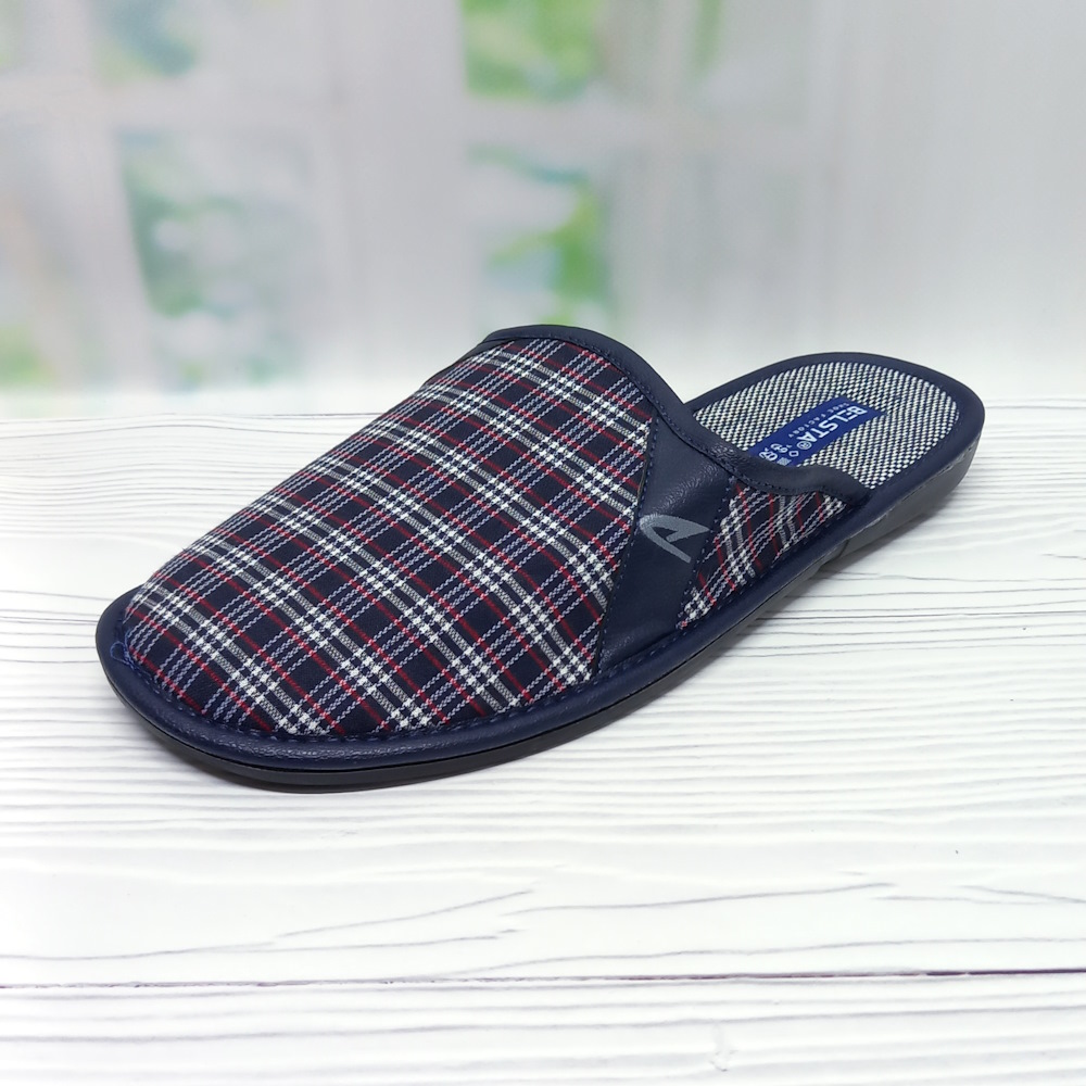 Тапочки мужские закрытые арт.33369 р.41-45 Белста синие, клетка