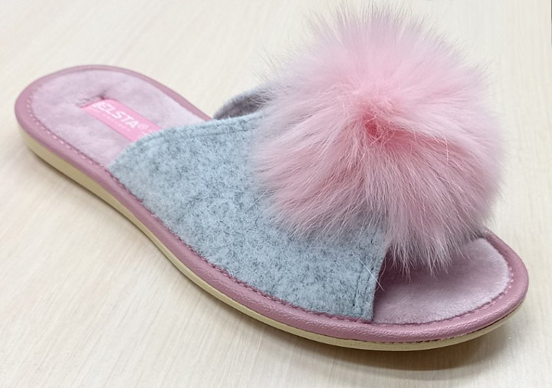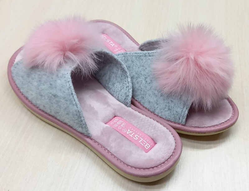 Тапочки арт.31877 р.36-41 Belsta серые, розовая стелька
