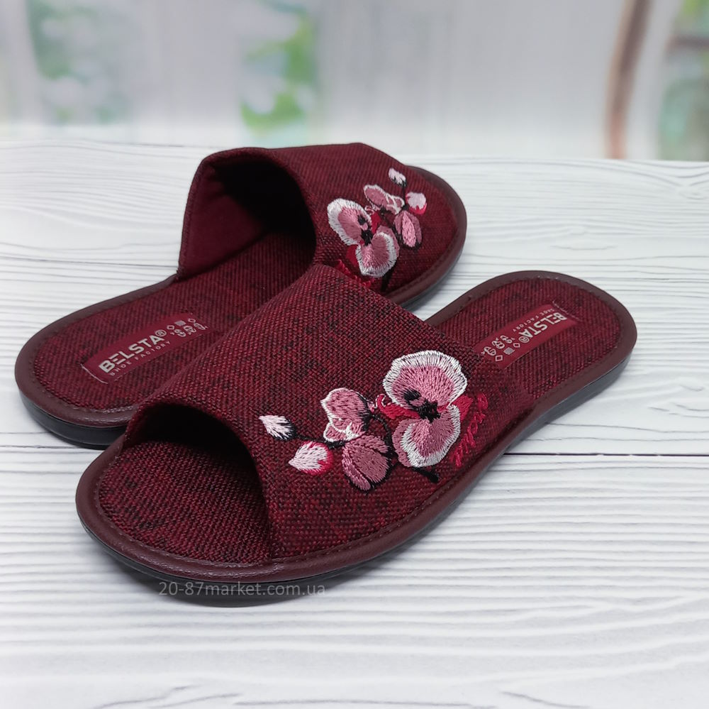 Тапочки Белста женские, р.36-41 арт.34266 Belsta бордовые, вышивка