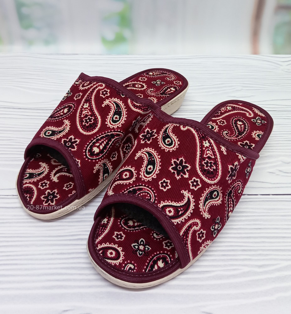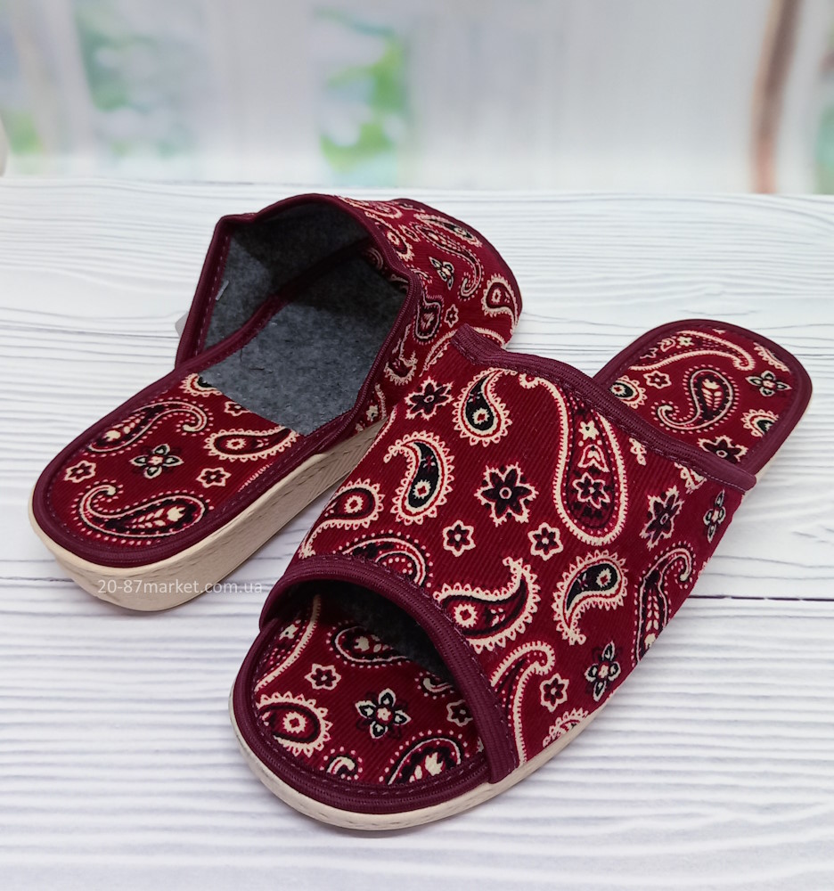 Женские тапочки Белста, бордового цвета.. Стелька текстильная, открытый носок. Высота пятки 2,5 см. Подошва из ПВХ