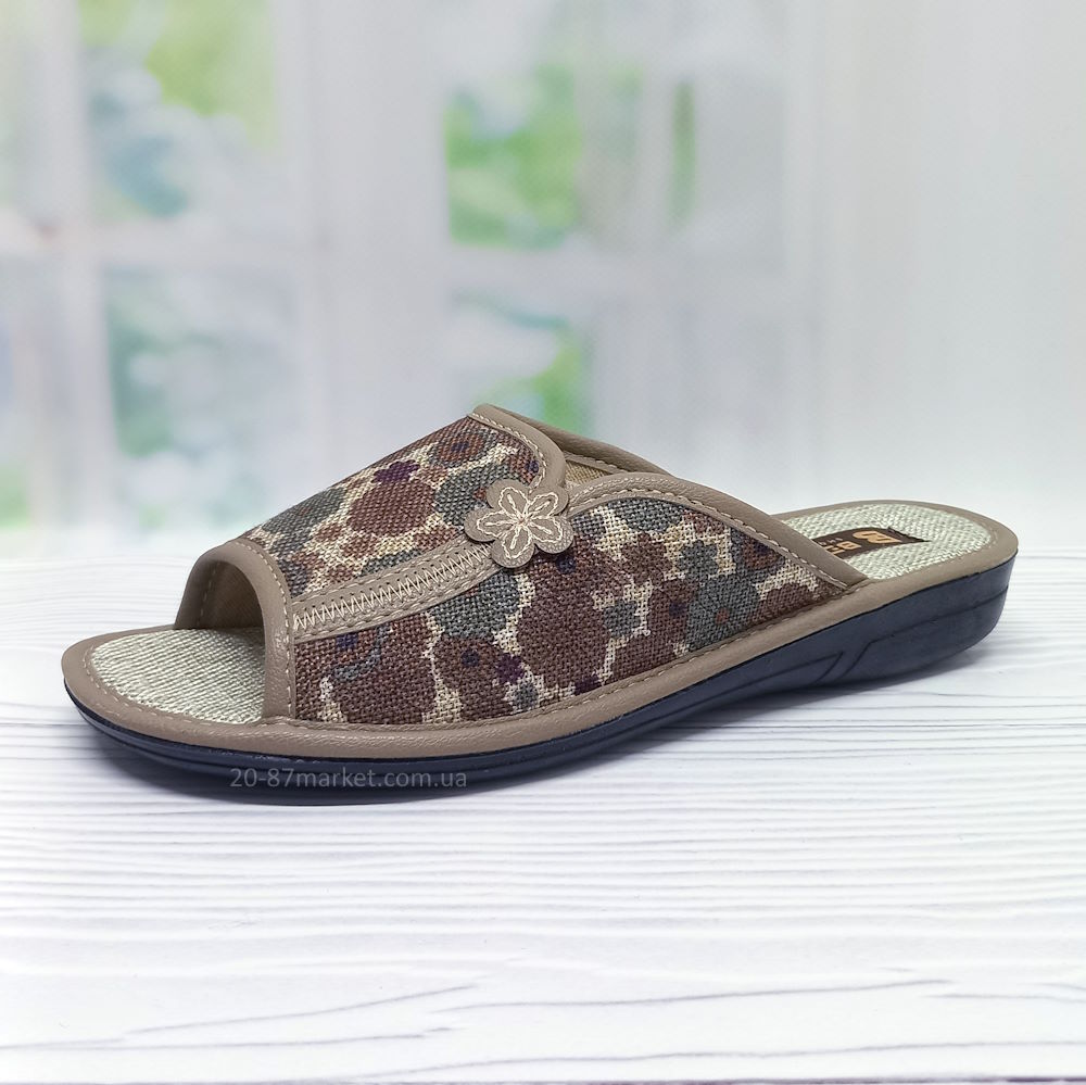 Тапочки женские бежевые, Белста, арт.34514, (Belsta), открытые, цветочный принт