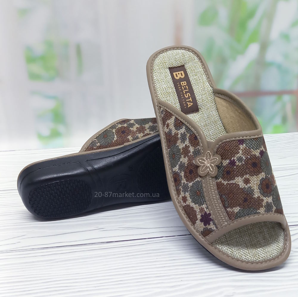 - Тапочки женские бежевые, Белста, арт.34514, (Belsta), открытые, цветочный принт