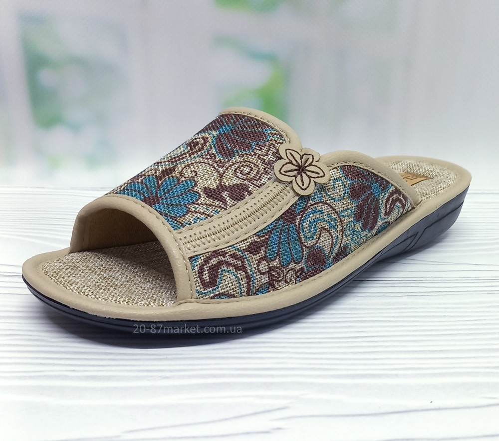 Женские домашние тапочки тм Белста с открытым носком, бежевого цвета, текстильная стелька, подошва полиуретановая, износостойкая, высота пятки 2см.
