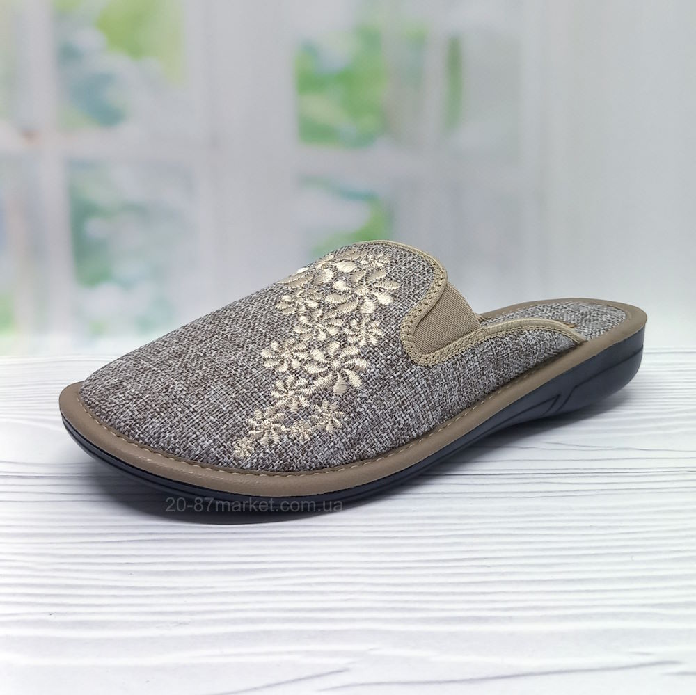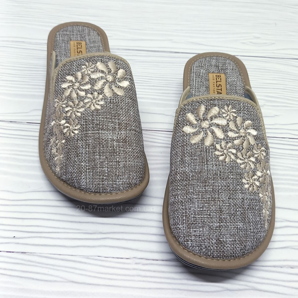 Тапочки женские Белста, бежевые, арт.34457, вышивка Цветочки