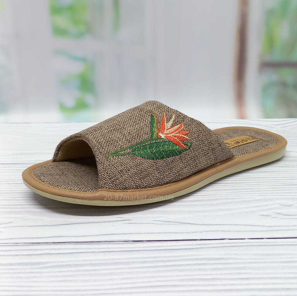 Тапочки женские Белста, р.36-41, арт.34265 Belsta бежевые, вышивка: цветок
