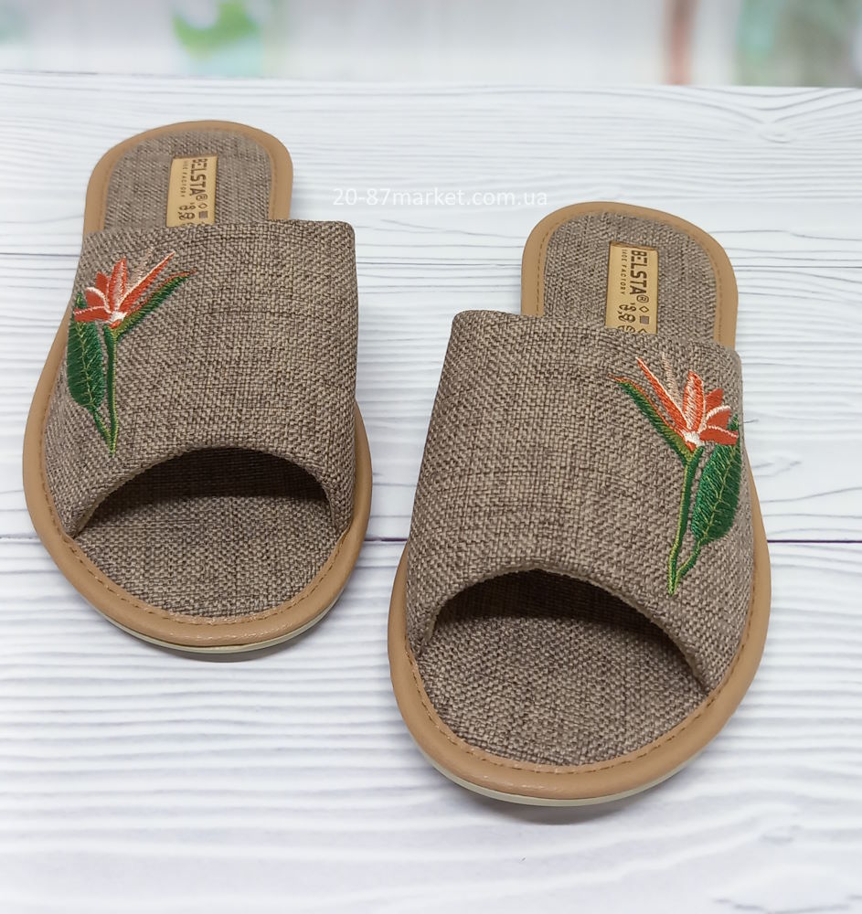 - Тапочки женские Белста, р.36-41, арт.34265 Belsta бежевые, вышивка: цветок