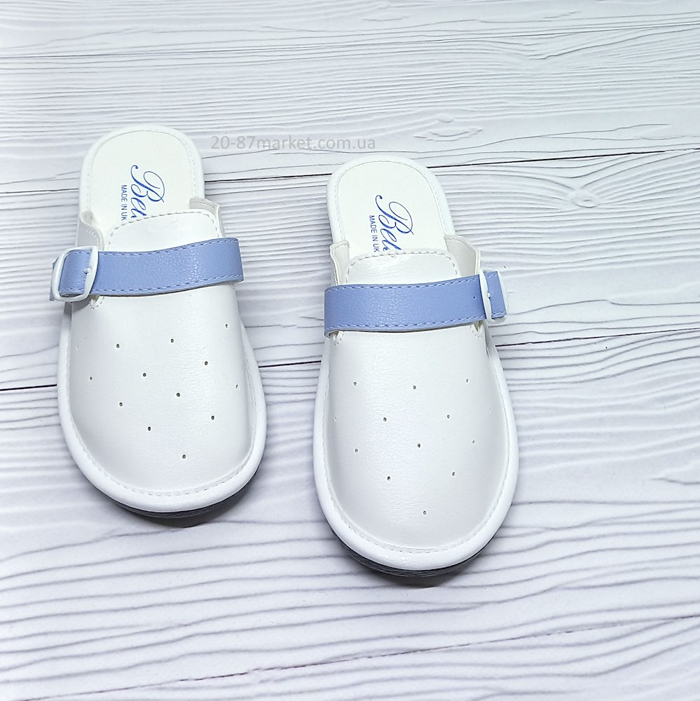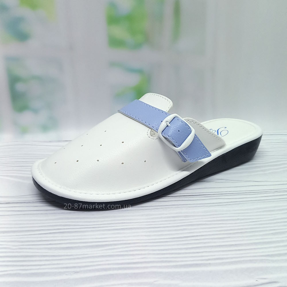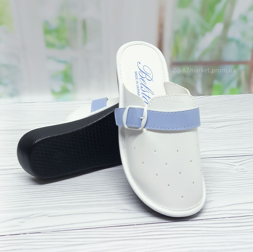 Женские комнатные тапочки Белста, с закрытым носком, белого цвета. Стелька из экокожи, подошва полиуретановая, износостойкая, высота пятки 2,5см.