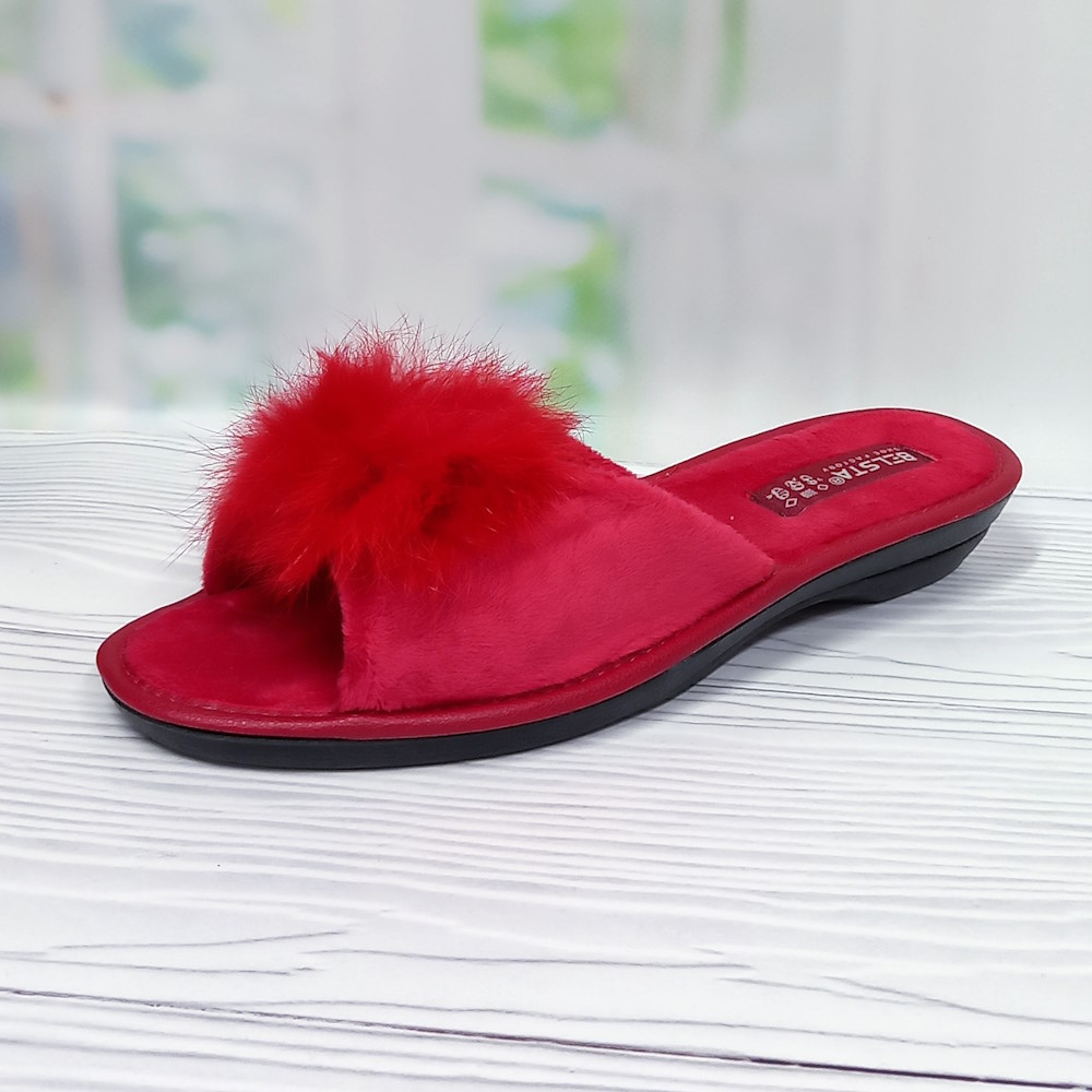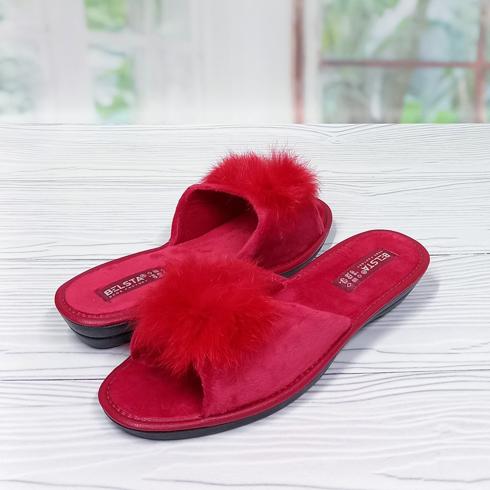 - Тапочки женские велюровые комнатные арт.35393 р.37-40 Белста красные украшены пушком