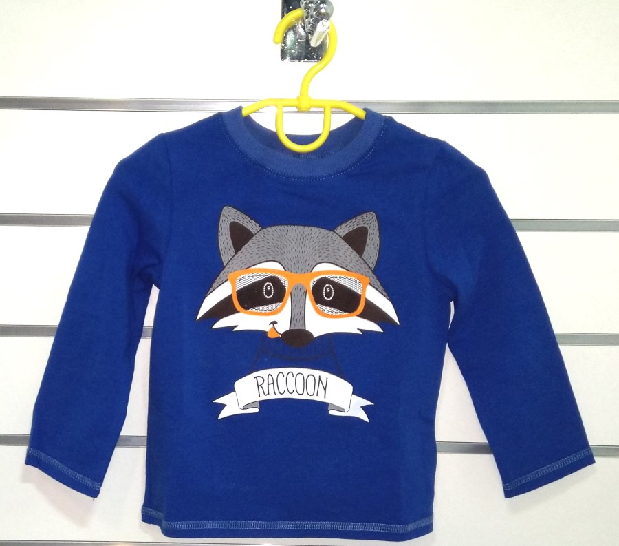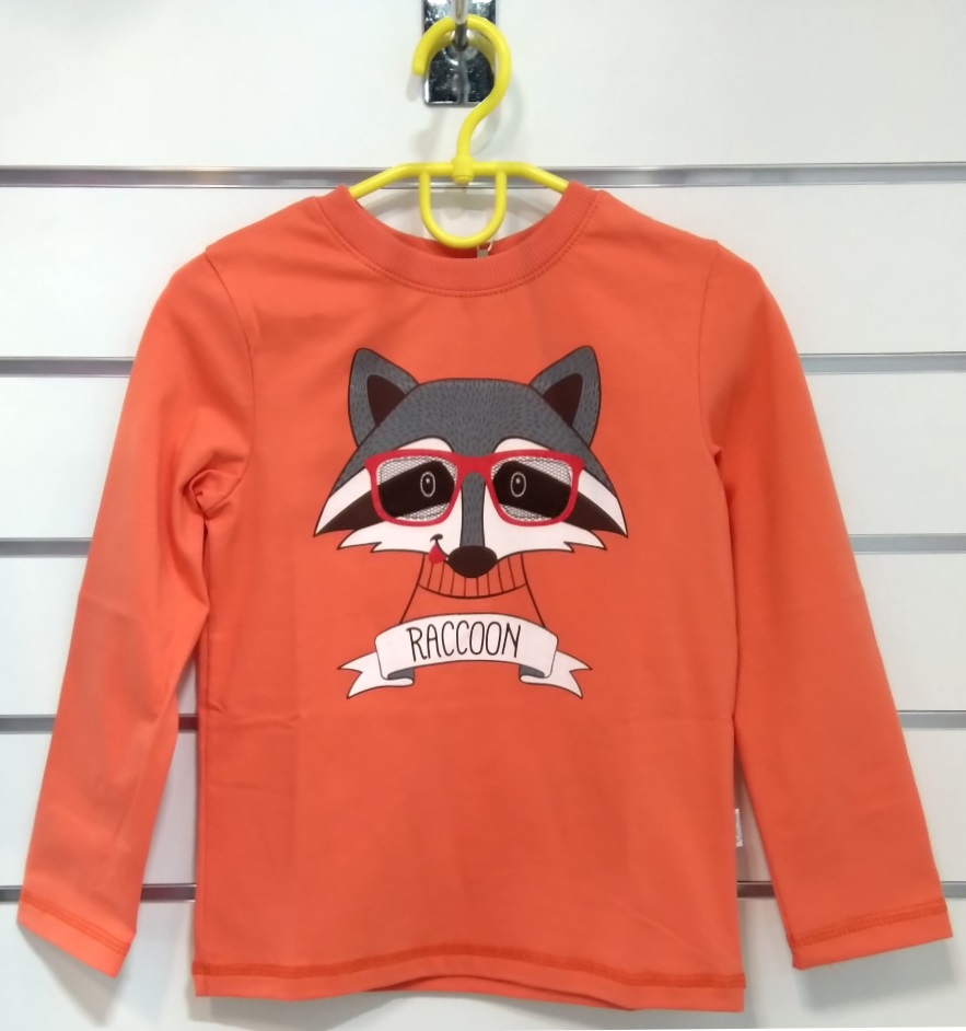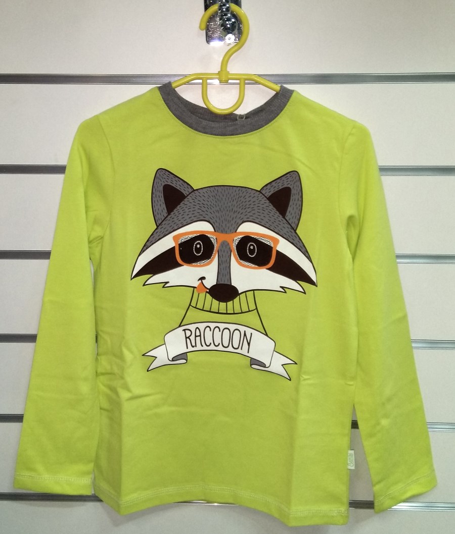 Джемпер для мальчика оранжевого, салатового и синего цвета, с изображением енота. Стойкое изображение, качественная хлопковая ткань.