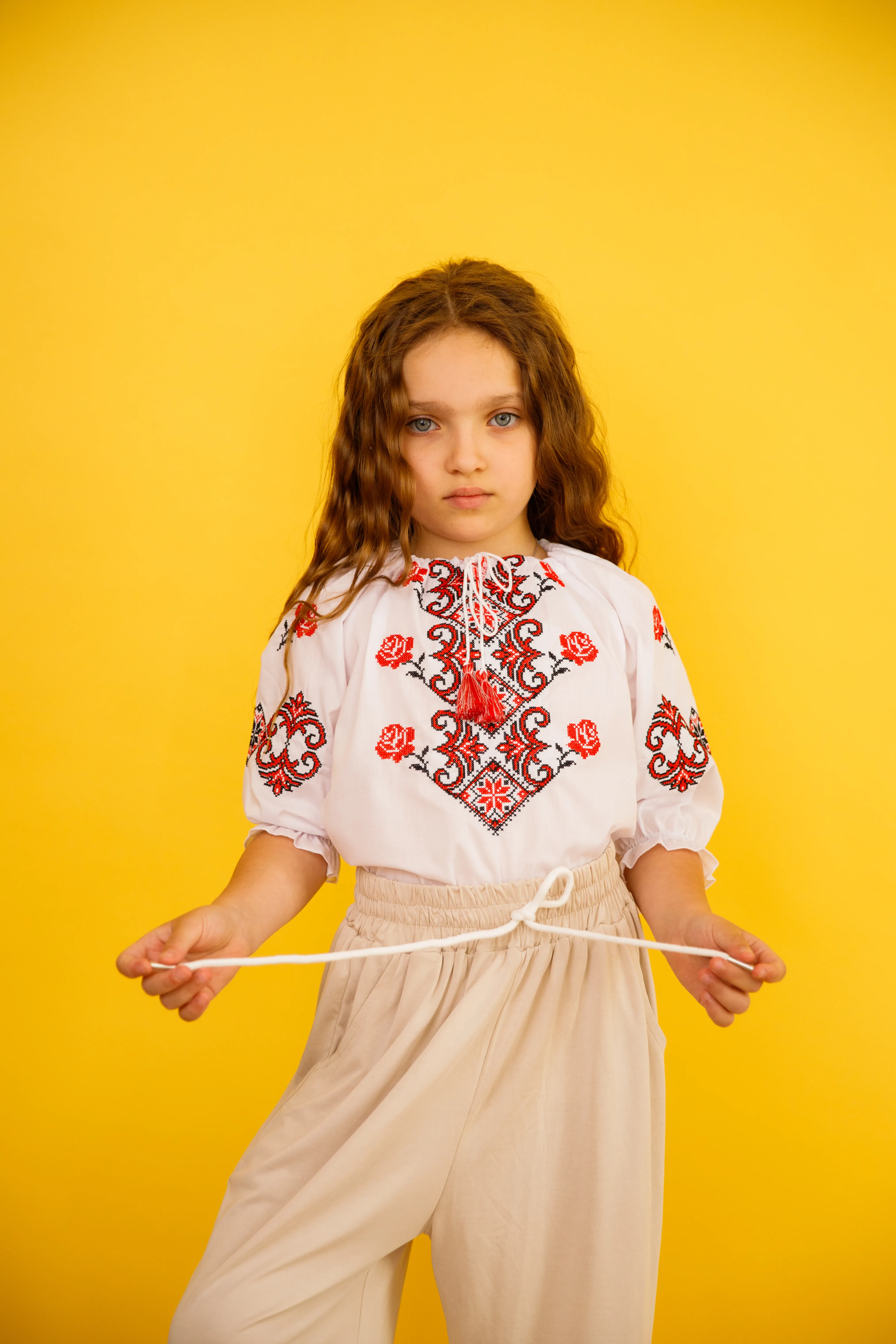 Вышиванка для девочки, красная вышивка на белом, длина рукава 3/4.