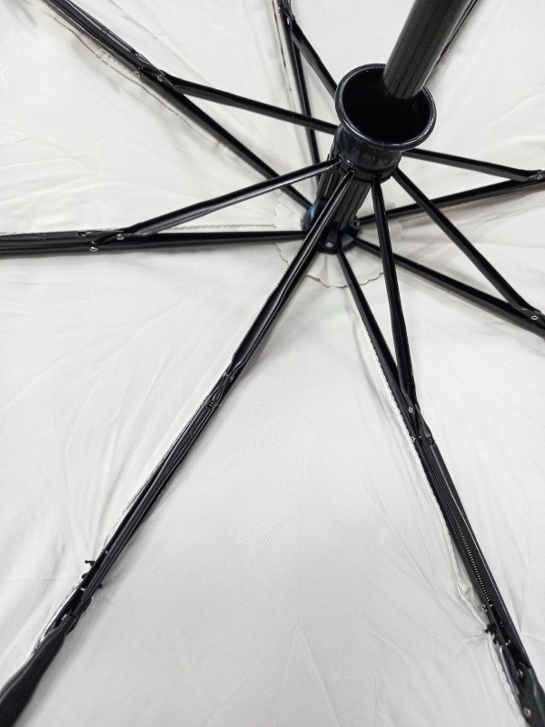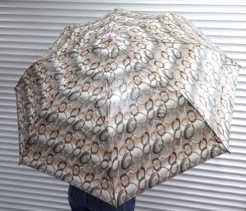 Жіночий парасолька, повний автомат, три складення, 8 спиць, довжина спиць 58 см, матеріал купола - поліестер. Бежевий принт. Парасолька з чохлом.