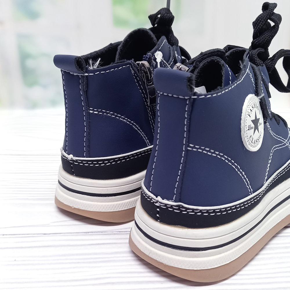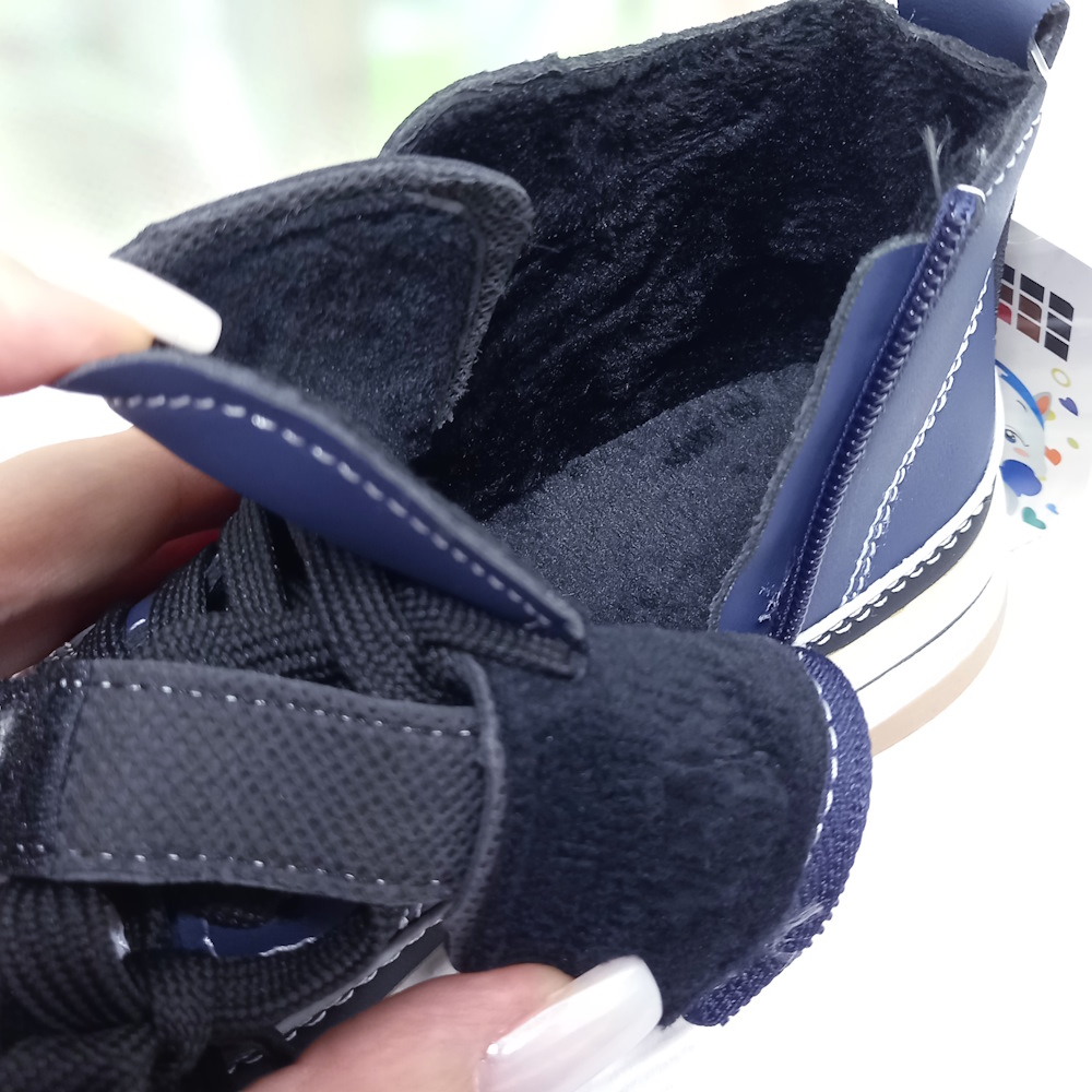 Демісезонні (весна/осінь) дитячі черевики, усередині фліс, устілка фліс, застібаються на липучках та блискавці. Підошва не ковзає.