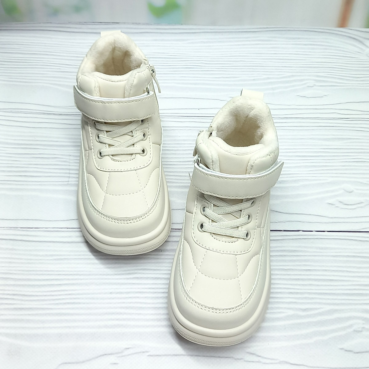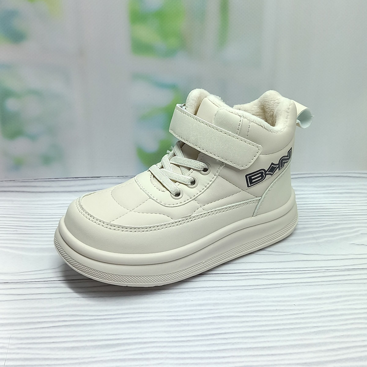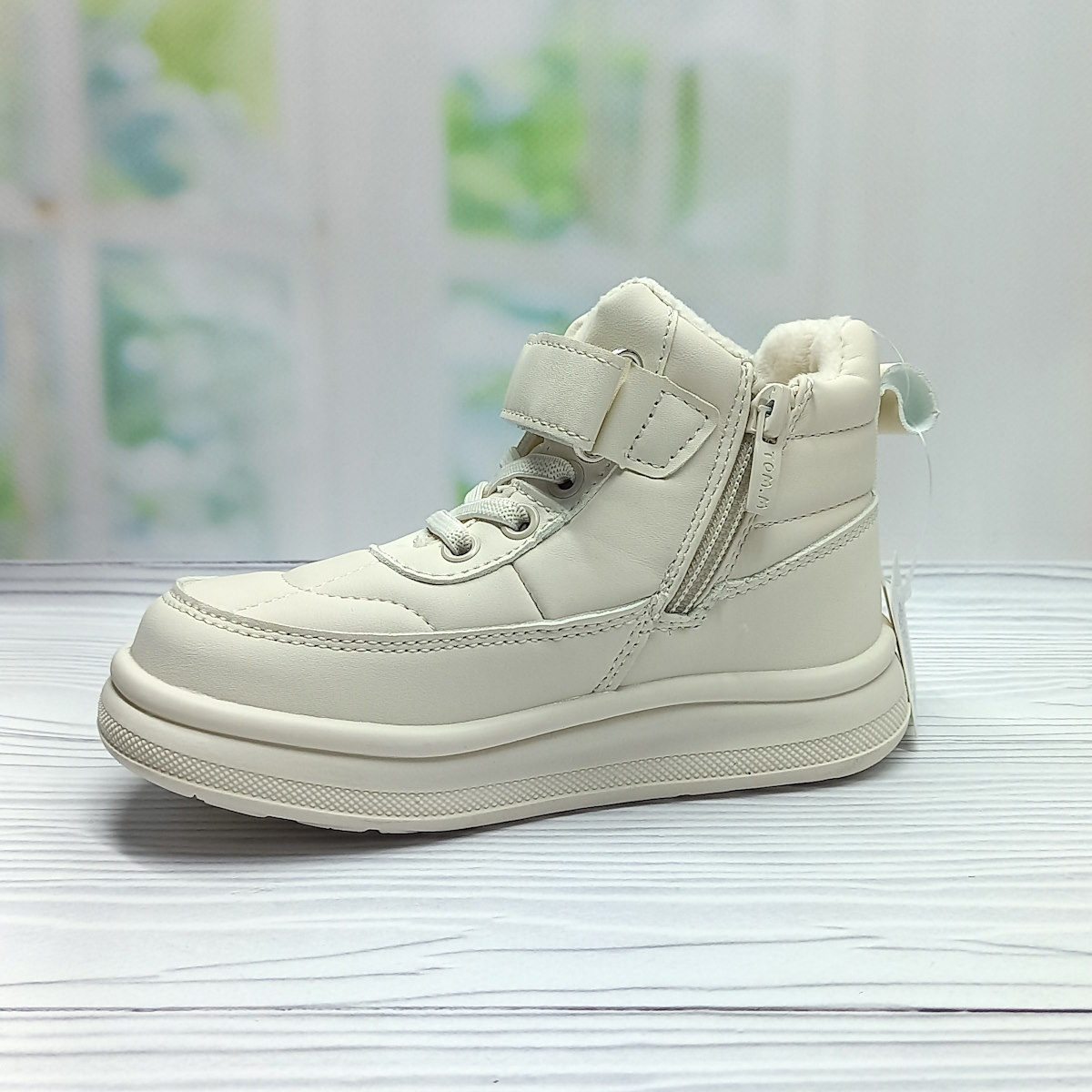 Дитячі демісезонні черевики для дівчинки ТМ Tom.m — зручне та тепле взуття для щоденного носіння. Модель виконана у бежевому кольорі, доповнена липучкою та застібкою-блискавкою для зручної фіксації на нозі. Внутрішнє оздоблення з дрібного штучного хутра забезпечує м’якість і тепло у прохолодну погоду.