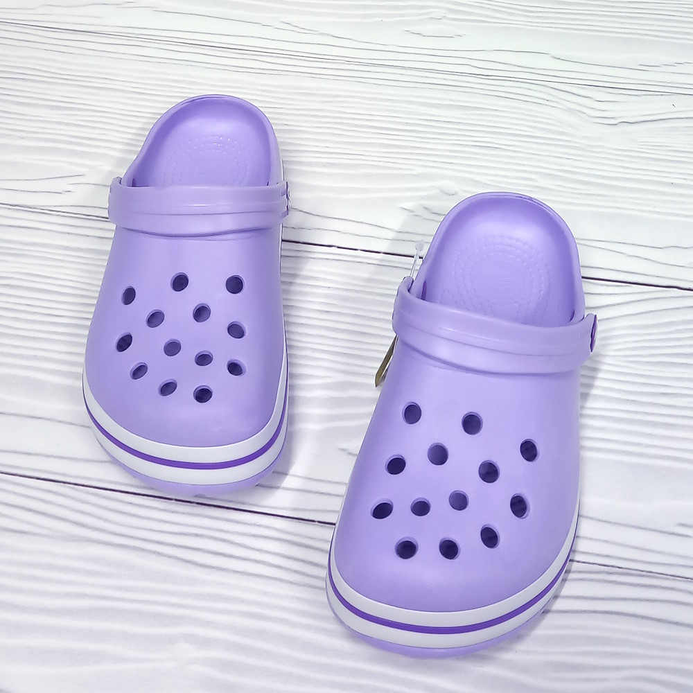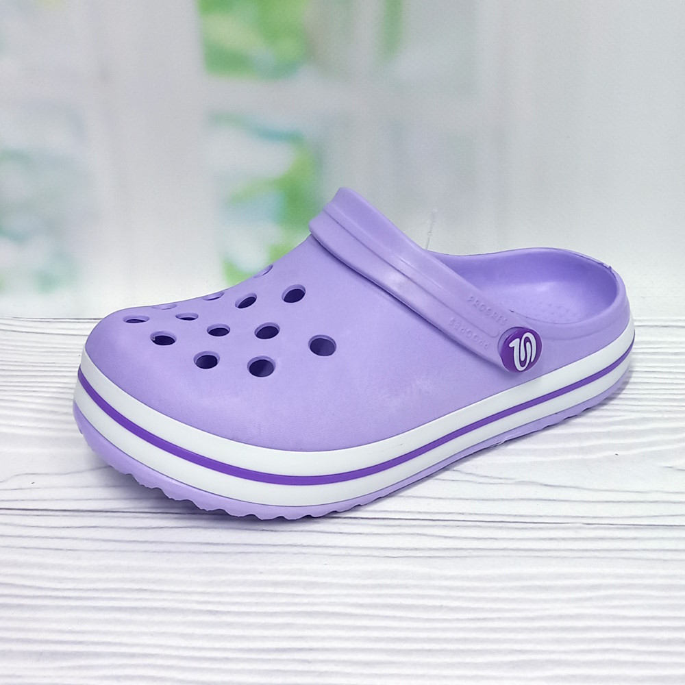 Дитячі крокси для дівчинки тм "Прогрес" колір: бузковий. Перфорований верх покращує вентиляцію стопи, перекидна задник-лямка надійно фіксує взуття на нозі.