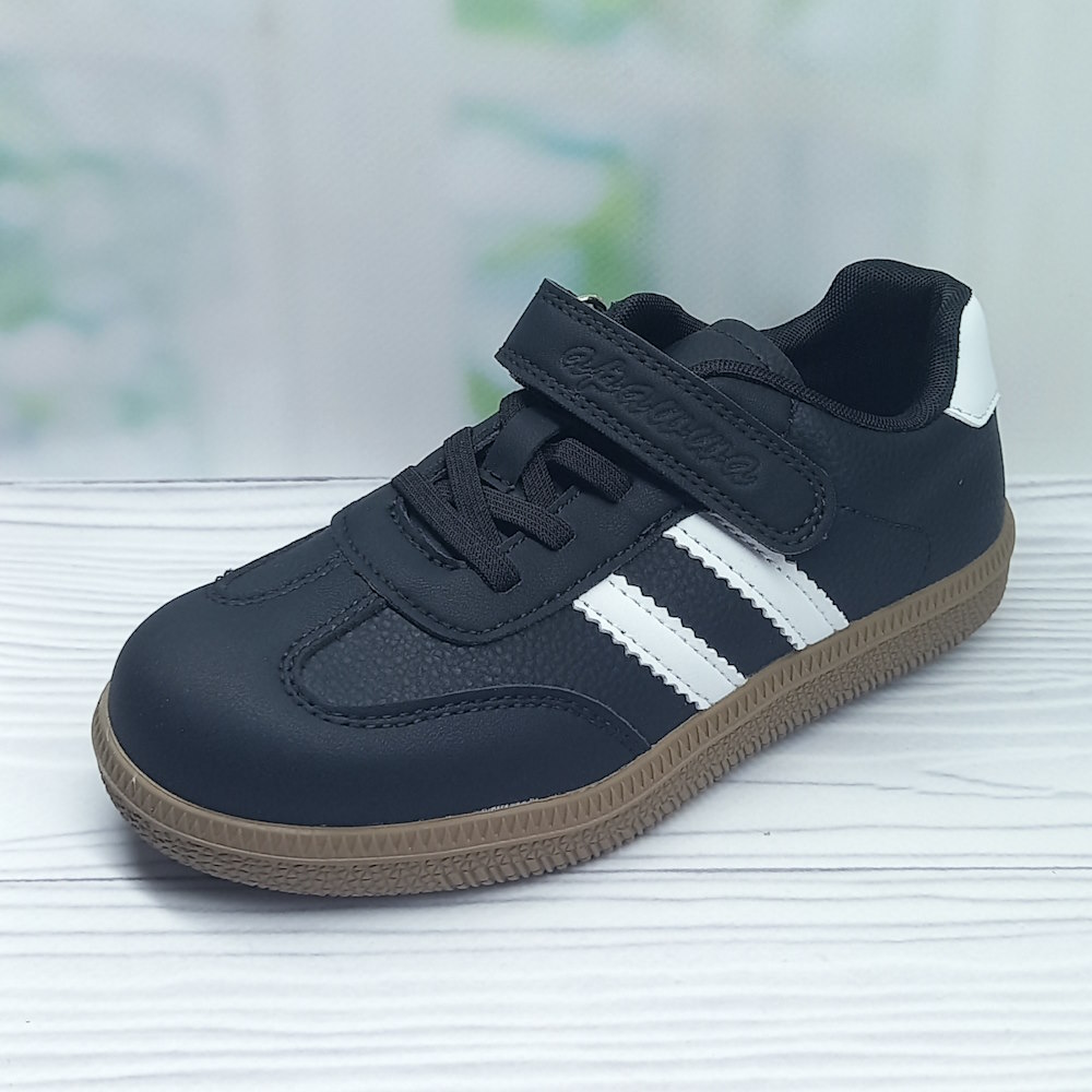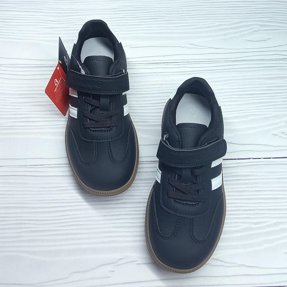 Чорні кросівки виконані в лаконічному дизайні та підходять як для садочка, так і для прогулянок. Застібки-липучки забезпечують зручне й швидке взування. Легка підошва знижує навантаження на стопи, а текстильна устілка робить кроки комфортними.