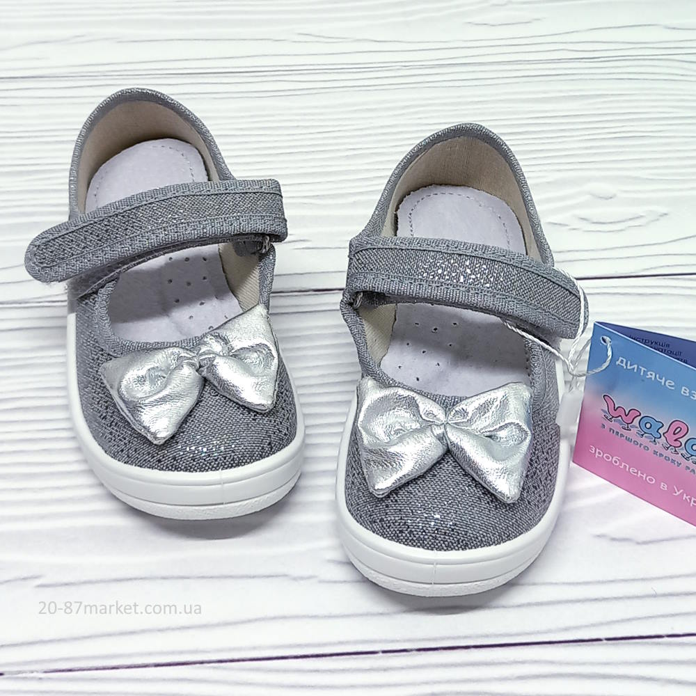 Дитячі капці для дівчинки арт.35268 р.24-30 Waldi сріблястий бант