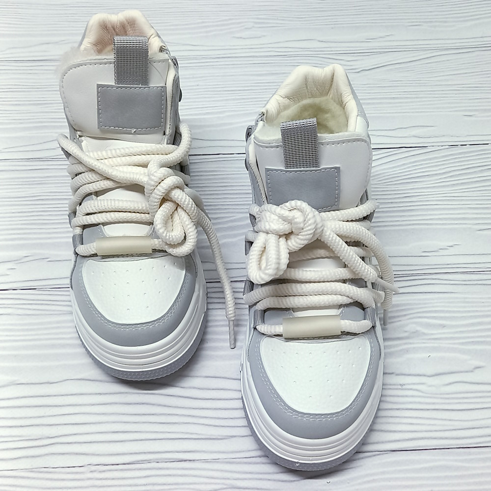 Кросівки для дівчинки, утеплені штучним хутром, застібка на шнурках та замку.