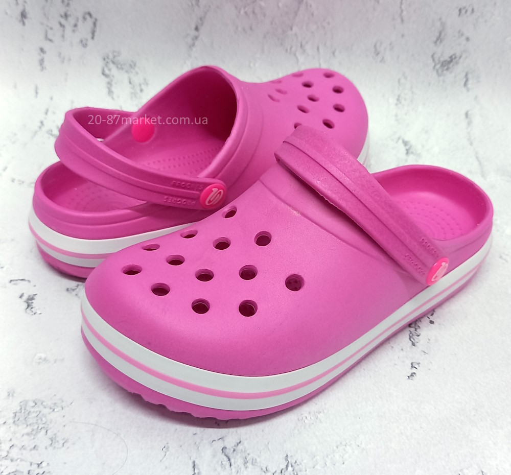Дитячі крокси для дівчинки. Перфорований верх покращує вентиляцію стопи, перекидна задник-лямка надійно фіксує взуття на нозі.