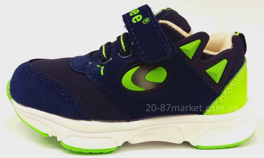 Кроссовки р.21-26 (20915) синий/салатовый Clibee