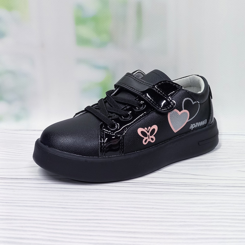 Чорні кросівки тм Apawwa, застібки на липучці та резинці-шнурівці, демісезонні.