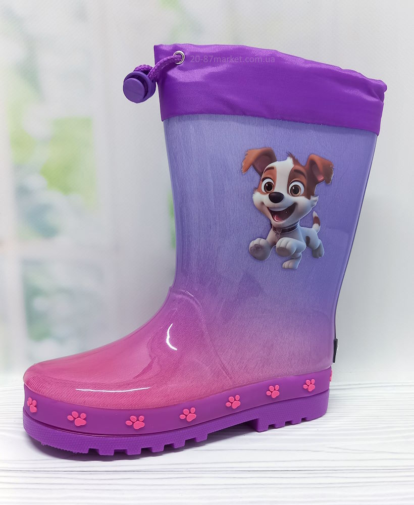 Гумові чоботи (ПВХ) для дівчинки, дуже красиво виглядають на нозі, стильний принт, без утеплювача, текстильна устілка, підошва не ковзає.