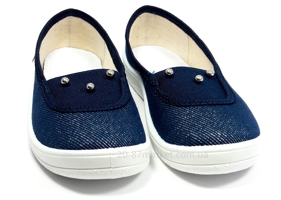 Сині капці для дівчинки. Шкіряна устілка, супінатор. Підошва білого кольору.