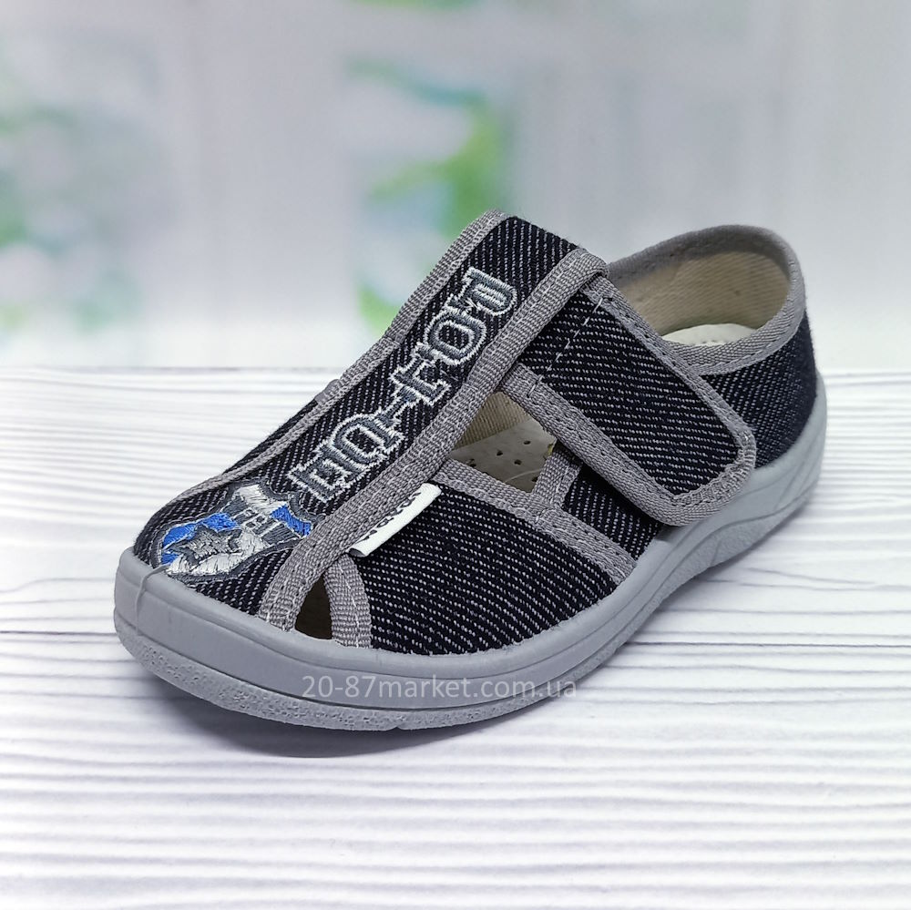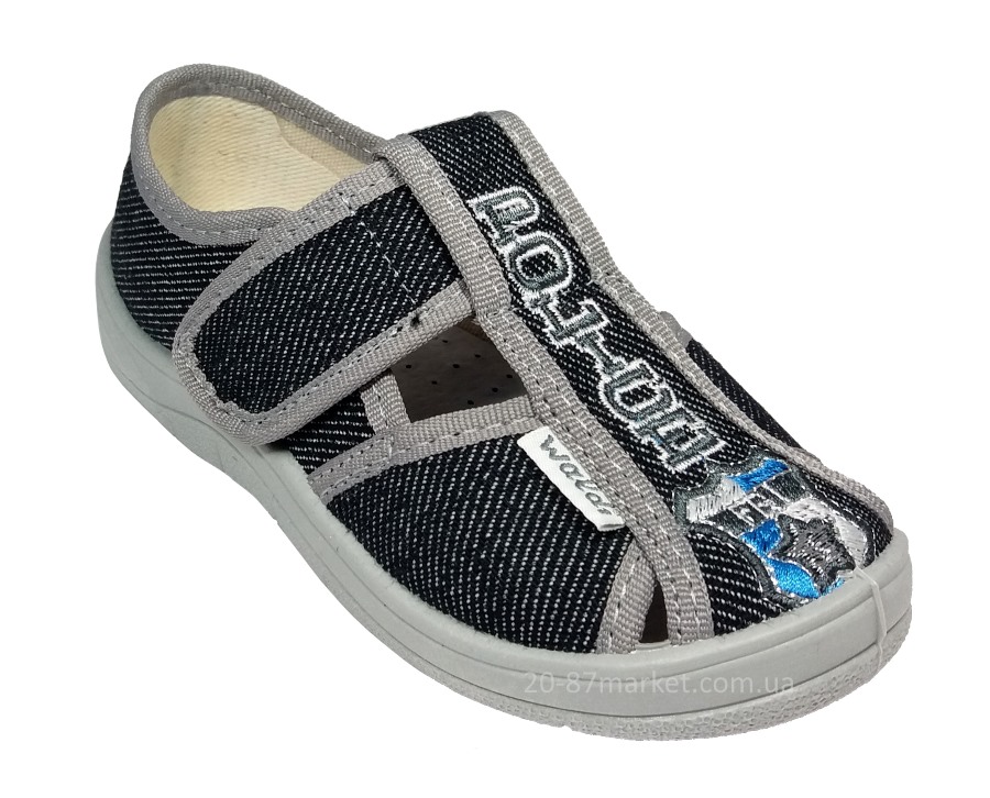 Капці Валді для хлопчика арт.27201 р.24-30 Waldi сірі, вишивка