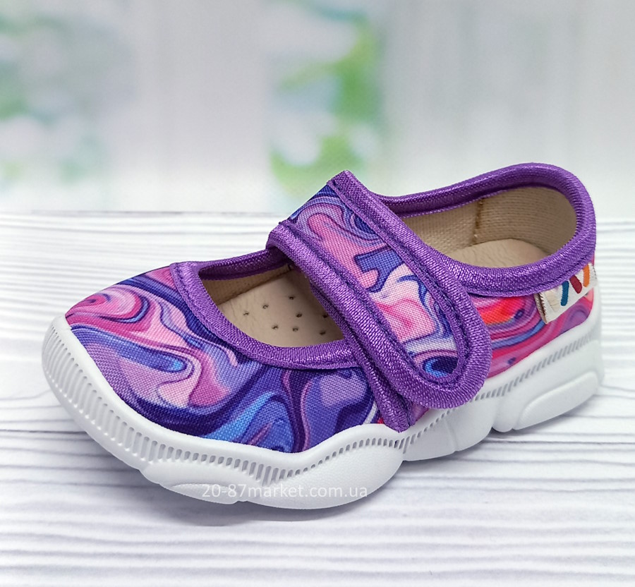 Капці для дівчинки, застібки з якісними липучками. твердий задник, шкіряна устілка, супінатор. гнучка підошва із пвх білого кольору.