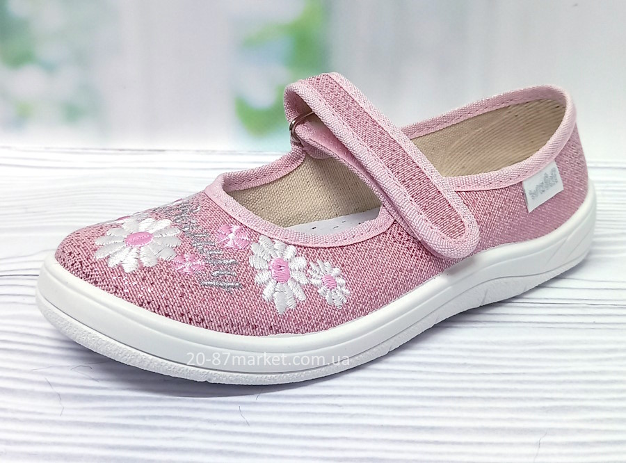 Капці на липучках для дівчинки арт.31590 р.24-30 Waldi (Валді) рожеві, вишивка "Ромашки"