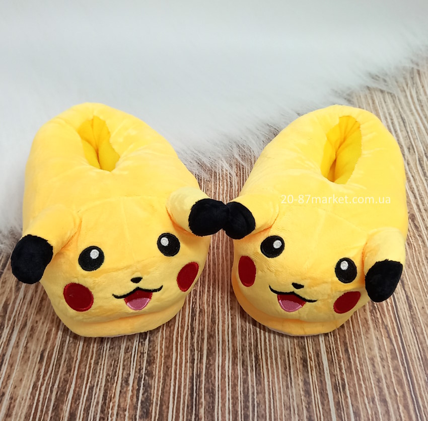Дитячі домашні капці Пікачу, дизайн тапочок такий, що вони більше схожі на іграшку, підошва не ковзає.