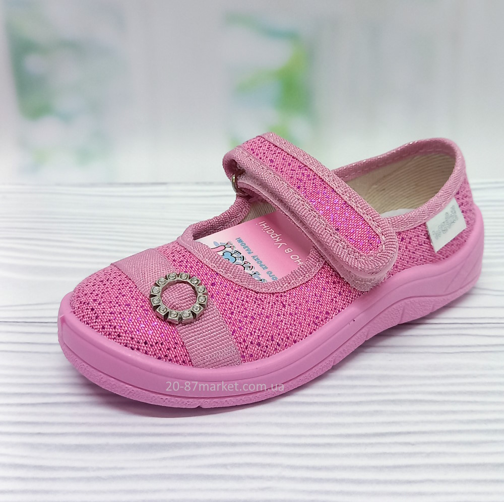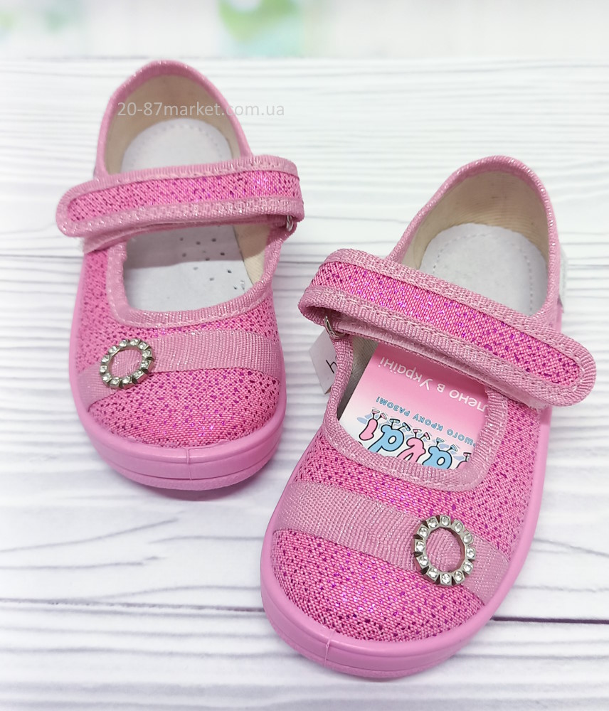 Капці Валді для дівчинки на липучках зі стразами. Шкіряна устілка, супінатор. Гнучка підошва рожевого кольору.