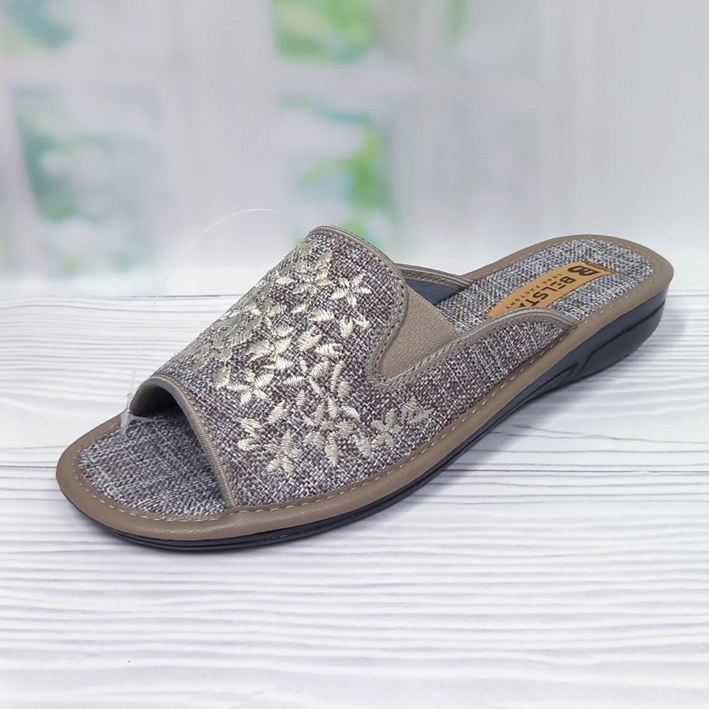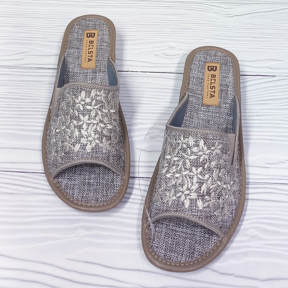 Жіночі домашні капці Білста, відкритий носок, вишивка - квіти, зносостійка поліуретанова підошва.