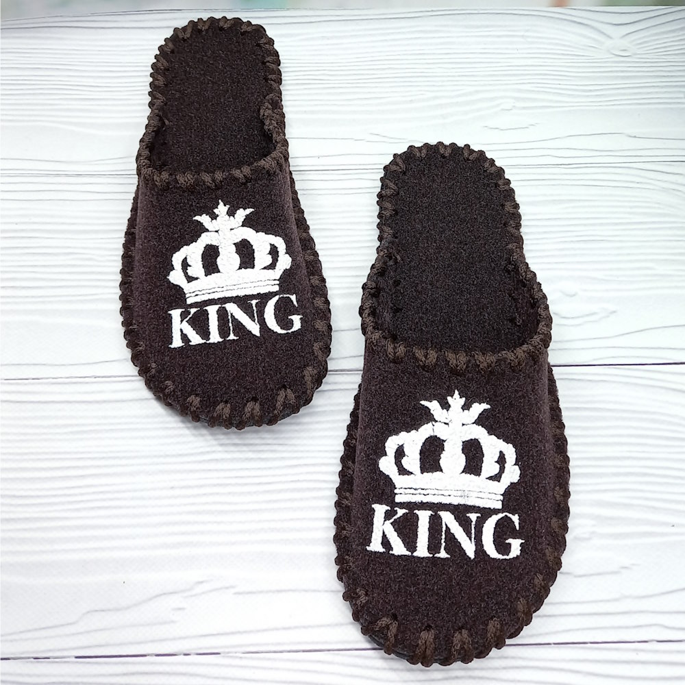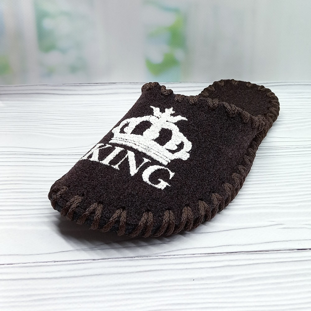 Капці виконані в коричневому кольорі, закритий носок забезпечує комфорт і захист, а відкрита п’ятка робить модель практичною, фетровий верх «дихає» та ефективно утримує тепло.