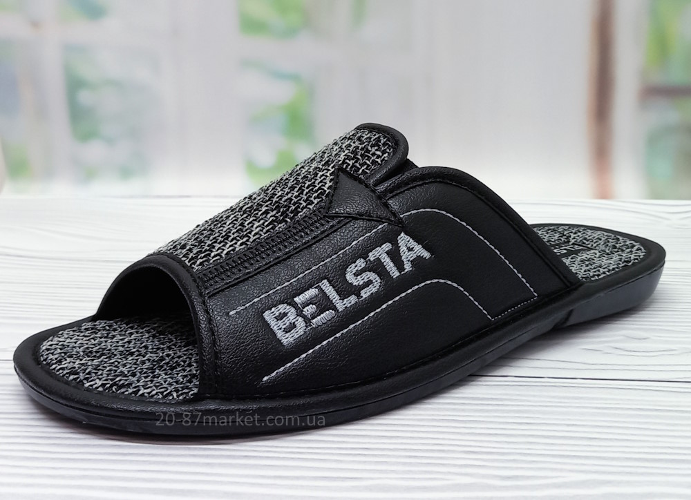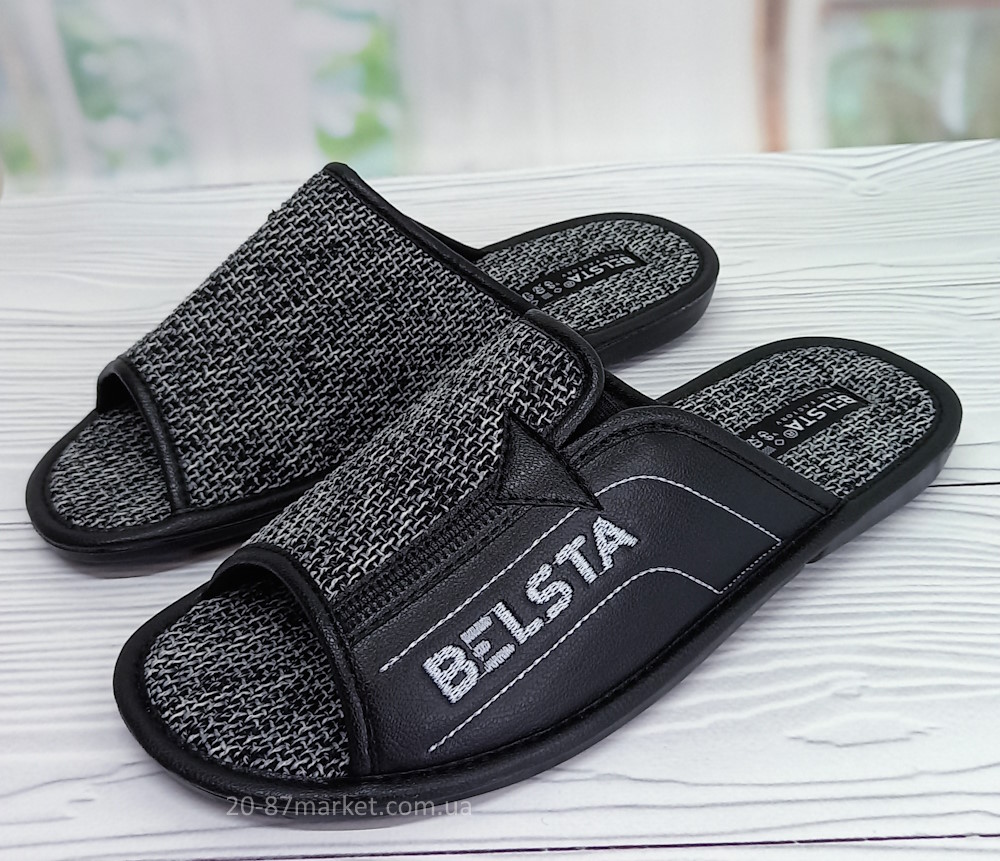 Стильні чоловічі капці Белста з відкритим носком. Текстильний верх тапочок та відкритий носок дозволяє ногам дихати. Стійка до стирання підошва з поліуретану.