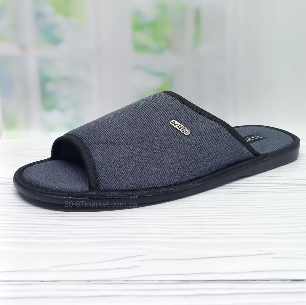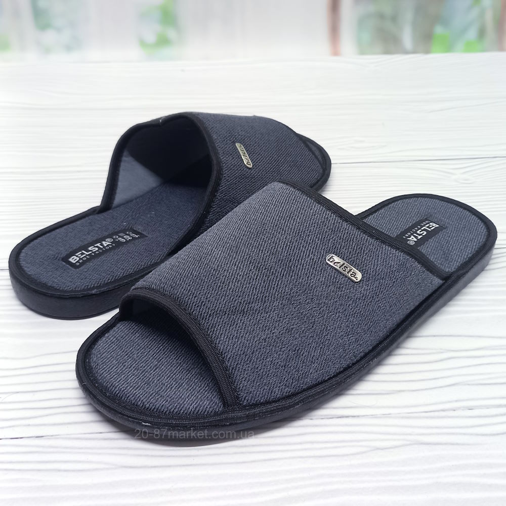 Стильні чоловічі капці Белста з відкритим передом. Текстильний верх тапочок та відкритий перед дозволяє ногам дихати. Стійка до стирання підошва з поліуретану.