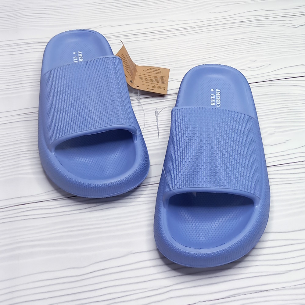 Блакитні шльопанці від ТМ American Club виготовлені з легкої та пружної піни ЕВА. Забезпечують зручну посадку, швидко сохнуть і легко миються. Ідеальний варіант для дому, пляжу, басейну або щоденного носіння влітку.